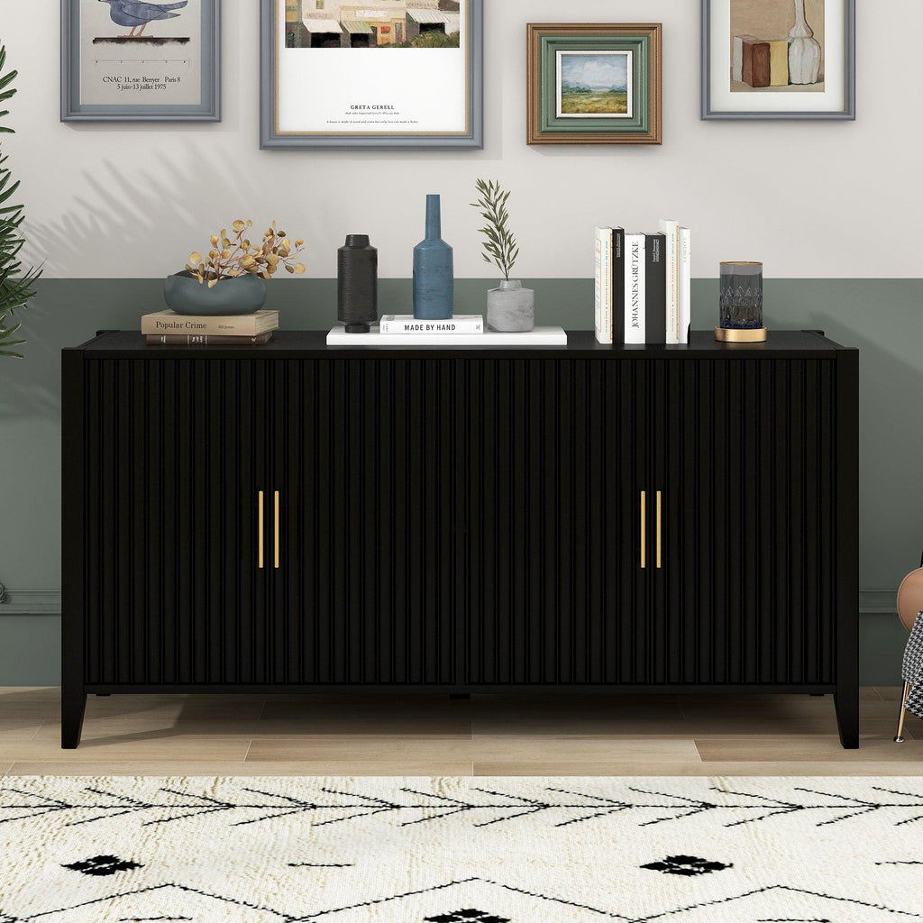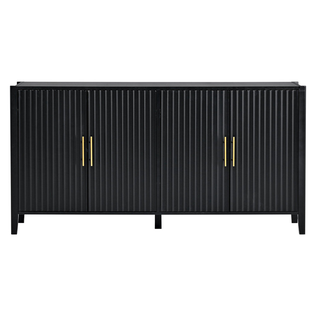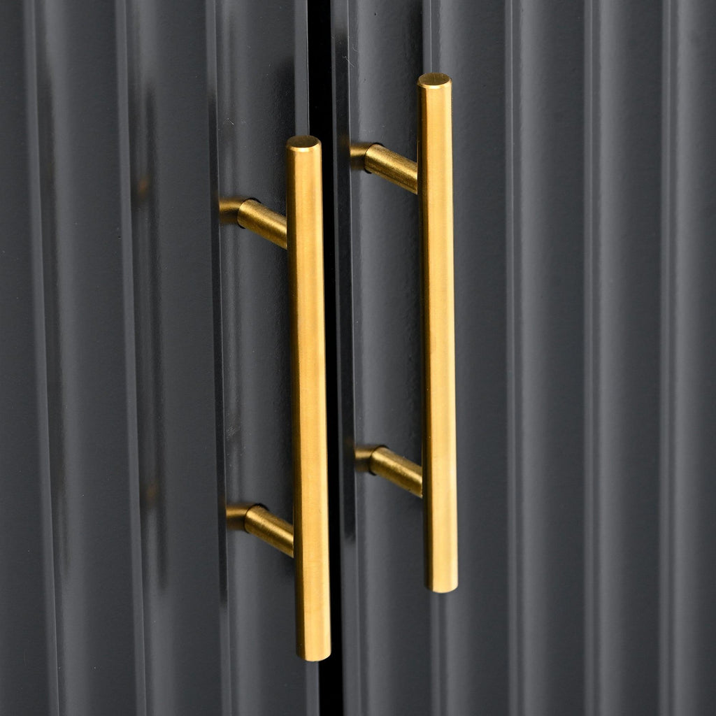 The combination of wave-patterned design and golden handles on the cabinet doors give it a unique and fashionable appearance.