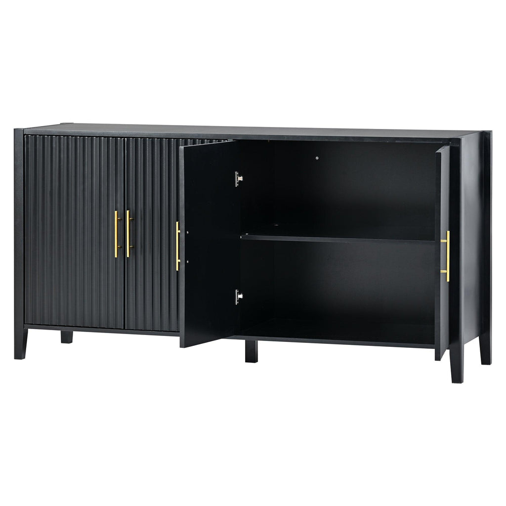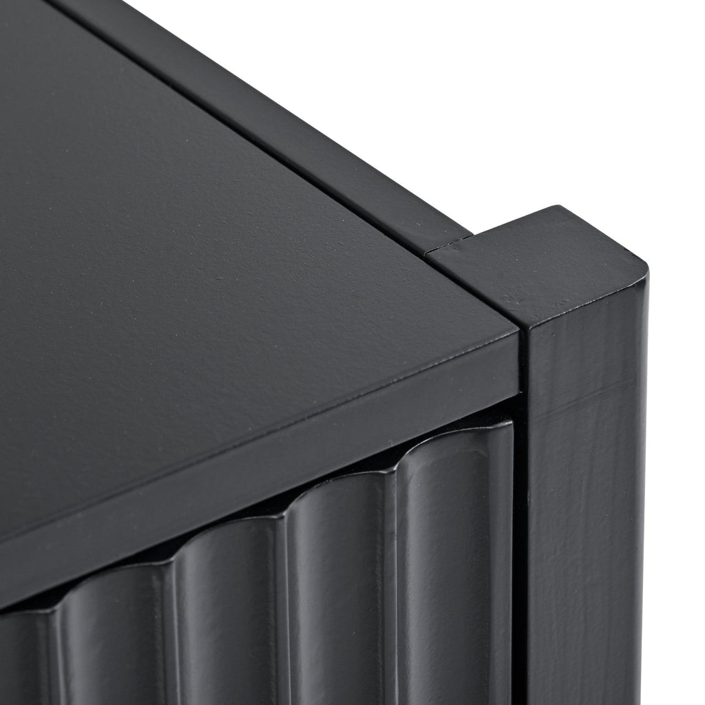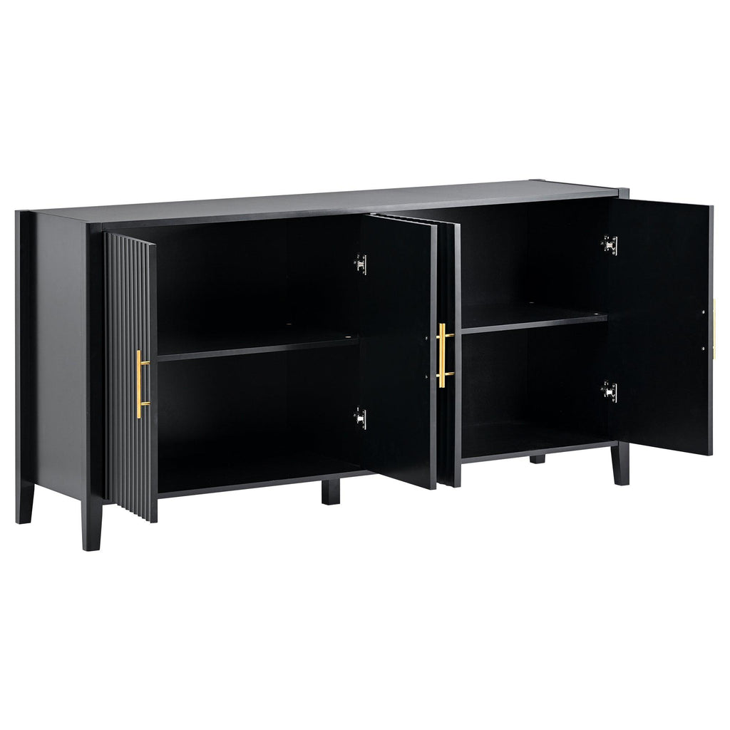 The combination of wave-patterned design and golden handles on the cabinet doors give it a unique and fashionable appearance.