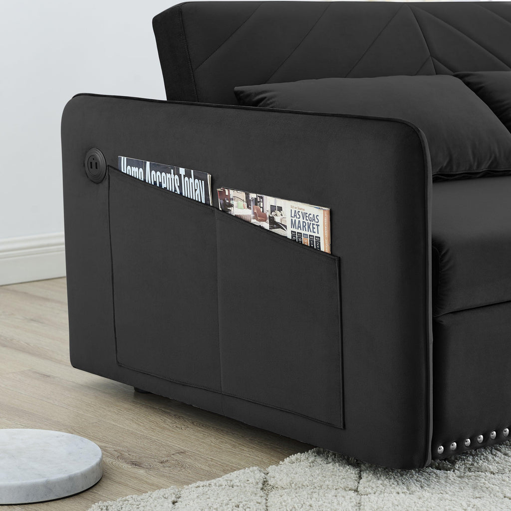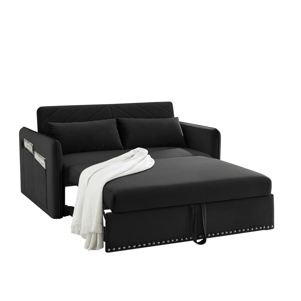 - 3 LEVELS ADJUSTABLE BACKREST: The adjustable backrest of the sleeper sofa can be converted to 3 different angles, from 105° to 180°, which allows you to find the best comfortable posture. Also, this pull-out sleeper sofa bed comes with 2 side pockets for easy storage of TV remotes, cell phones, magazines, keys, glasses, or that book you want to finish reading.