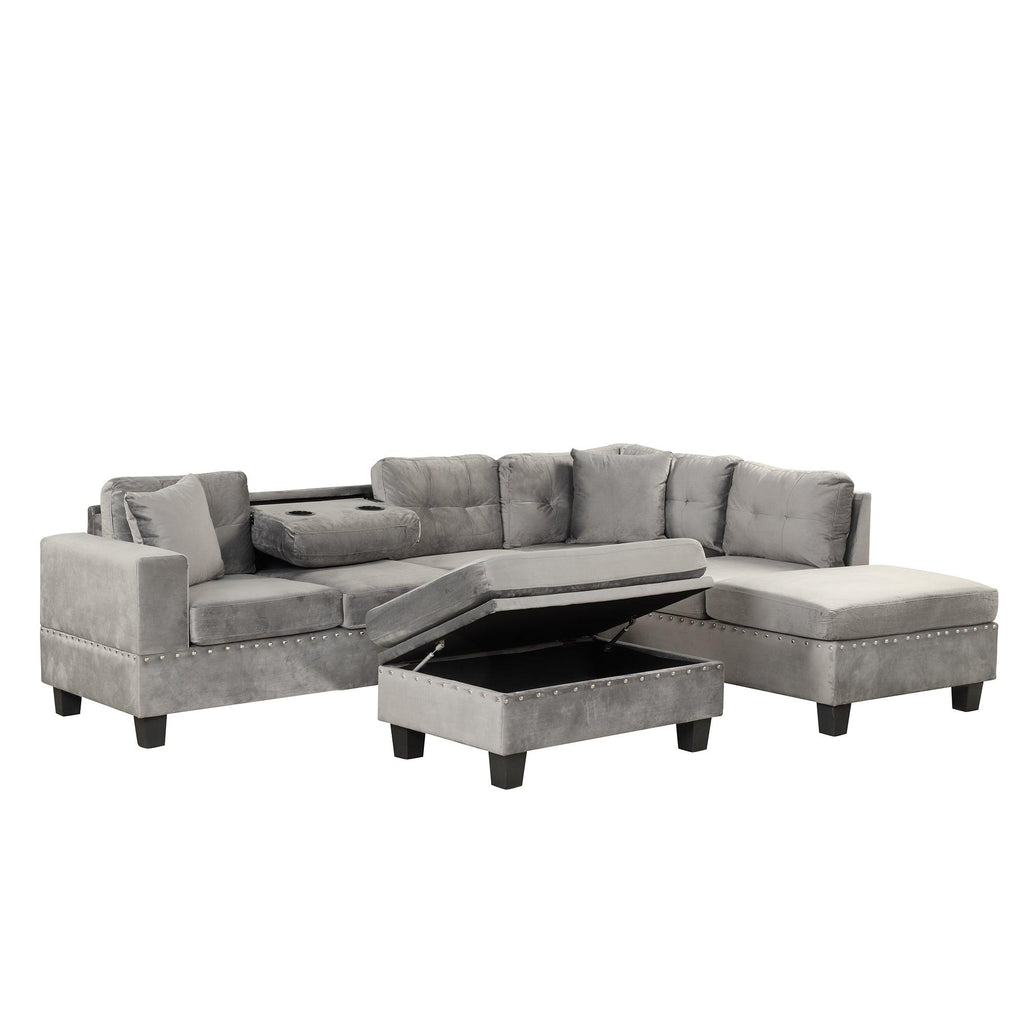 - Storage Ottoman - Spacious hidden storage ottoman for loose odds and ends, household accessories or extra linens. This sectional sofa with ottoman will make the perfect addition to your apartment or living room.