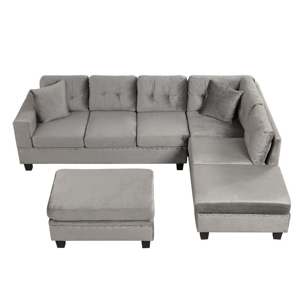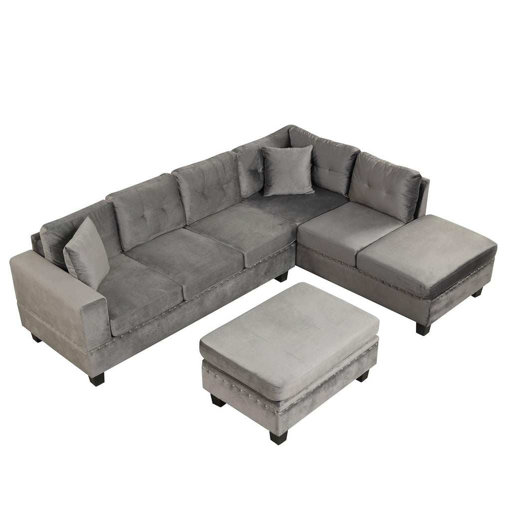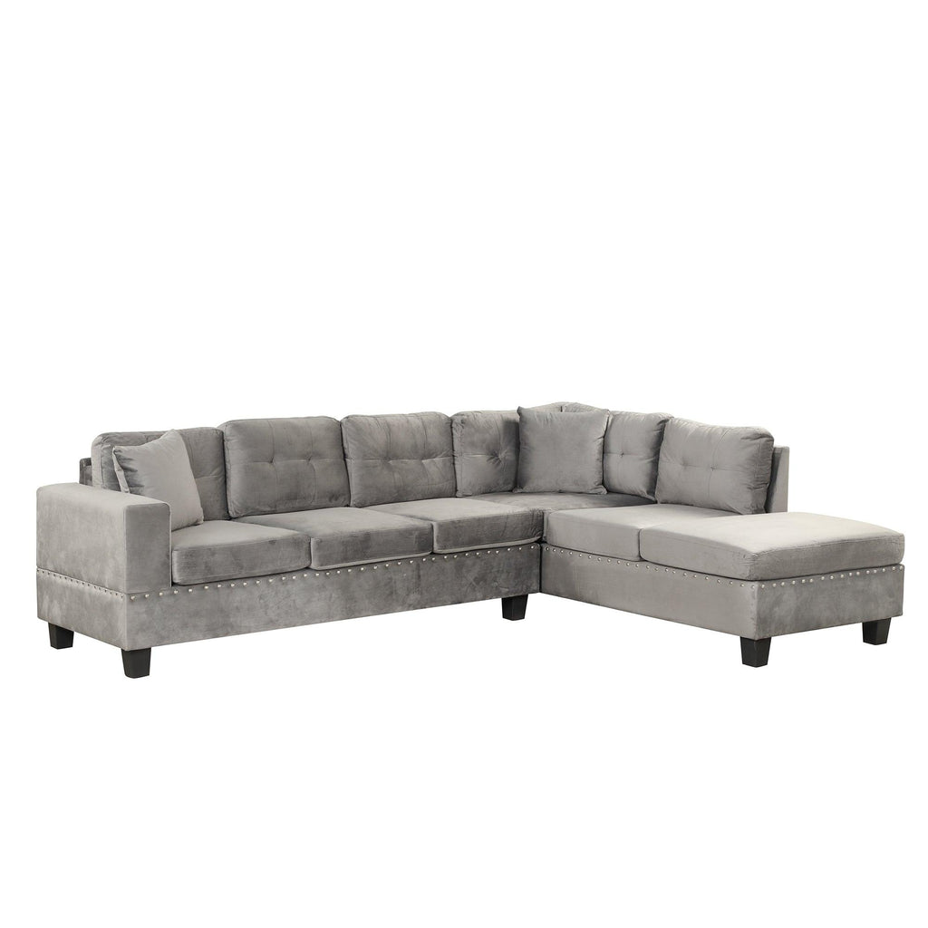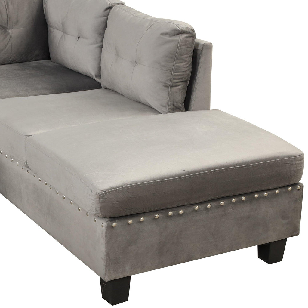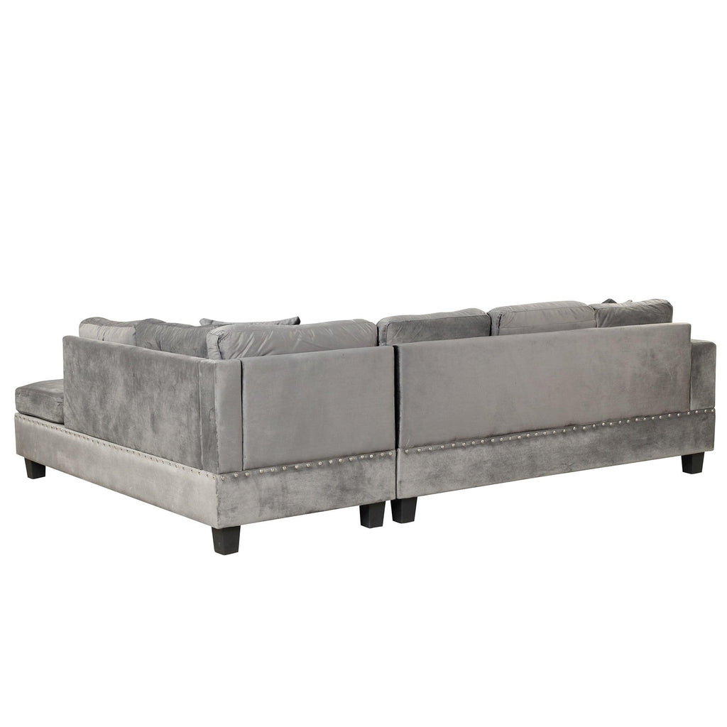 - Modern Design sectional Sofa with Rivet Trim - This sectional sofa with rivet trim embodies the art of light luxury. The modern sofa design is stylish to help you add maximum comfort to your home. And the beautiful appearance can perfectly match with living environment.