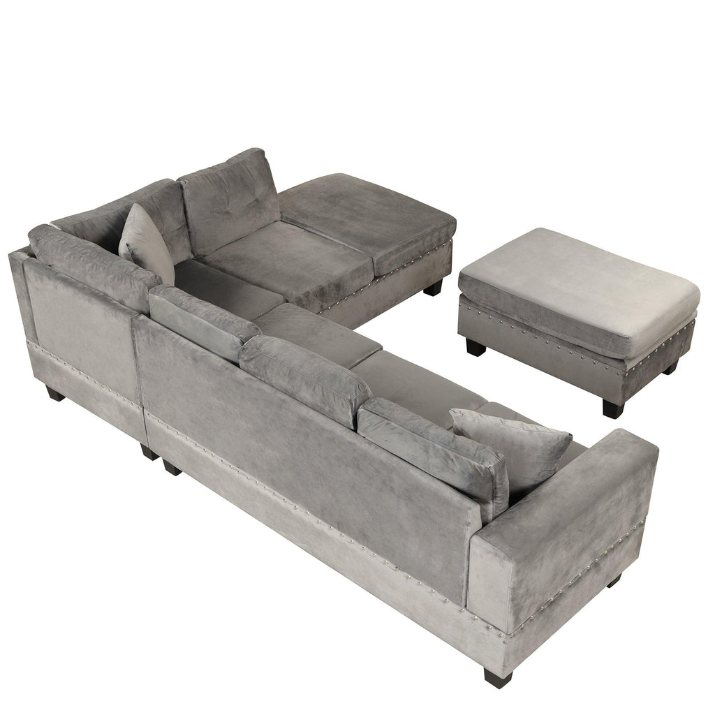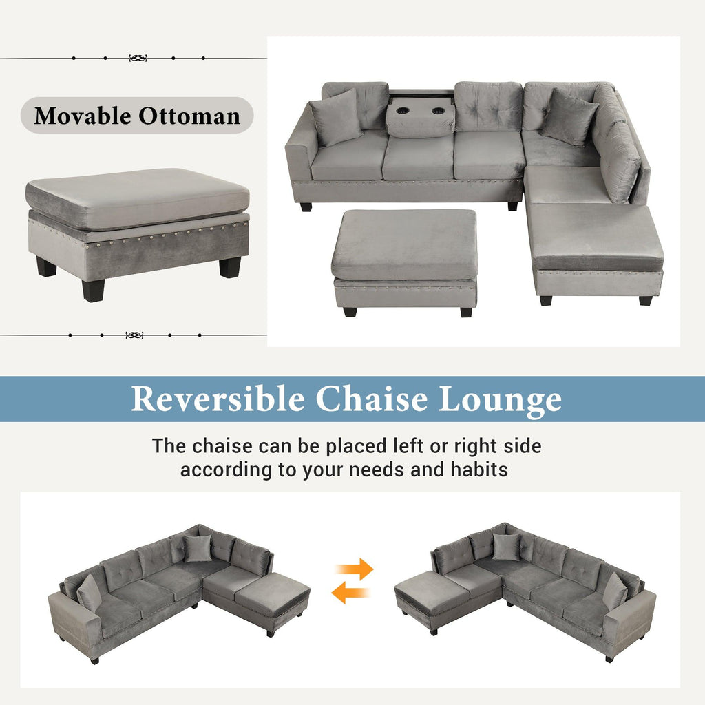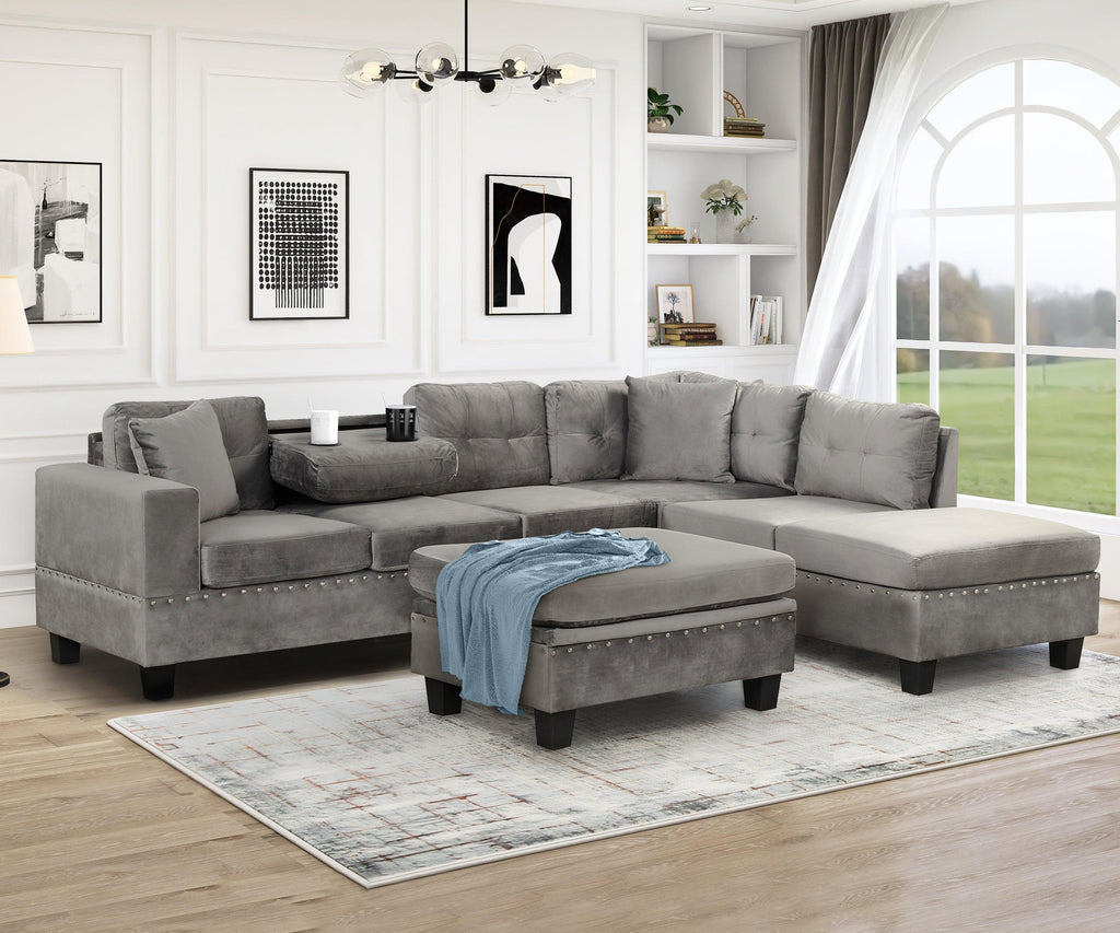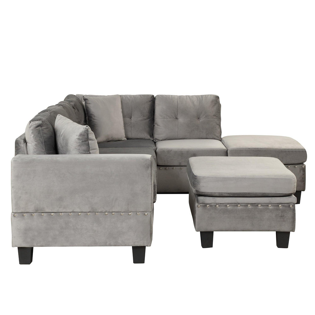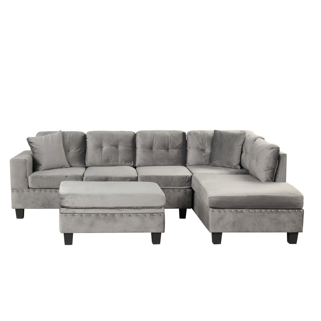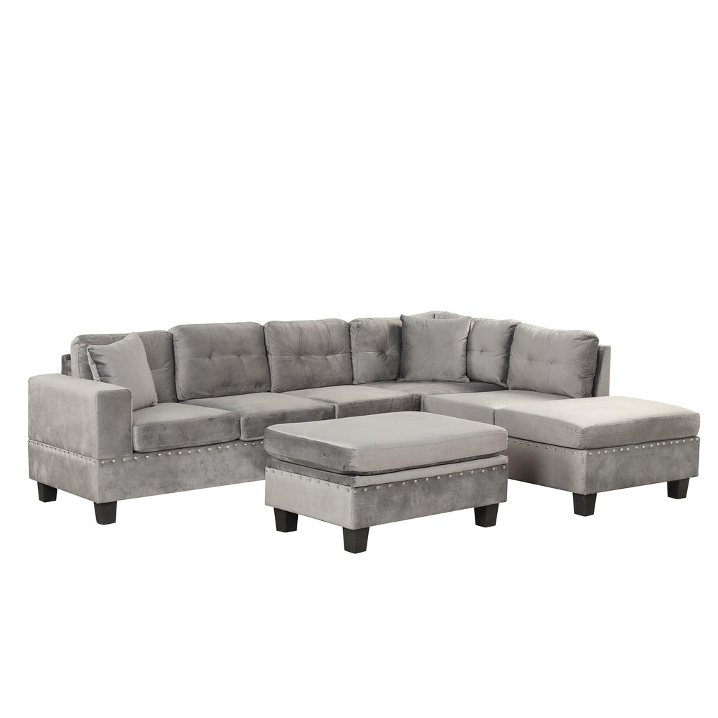 - Modern Design sectional Sofa with Rivet Trim - This sectional sofa with rivet trim embodies the art of light luxury. The modern sofa design is stylish to help you add maximum comfort to your home. And the beautiful appearance can perfectly match with living environment.