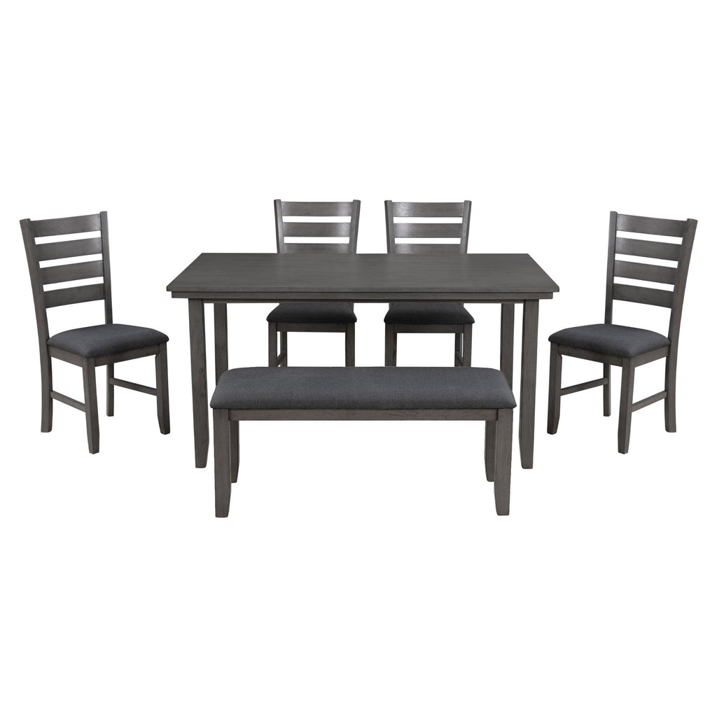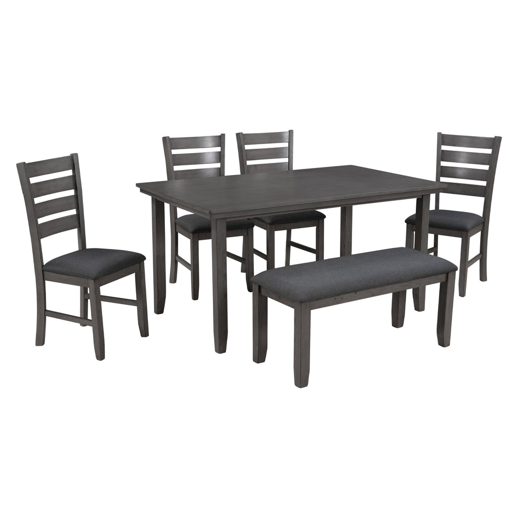- Dining Set for 6: Gather everyone around this dining set - it can comfortably seat 6 people with one table, four chairs and one 2-person bench included, creating a beautiful and relaxed dinner time. Perfect for family meals or gatherings in your dining room or kitchen.