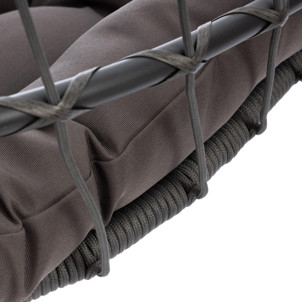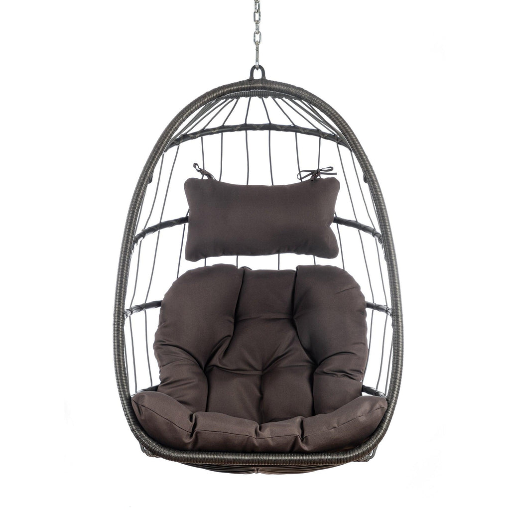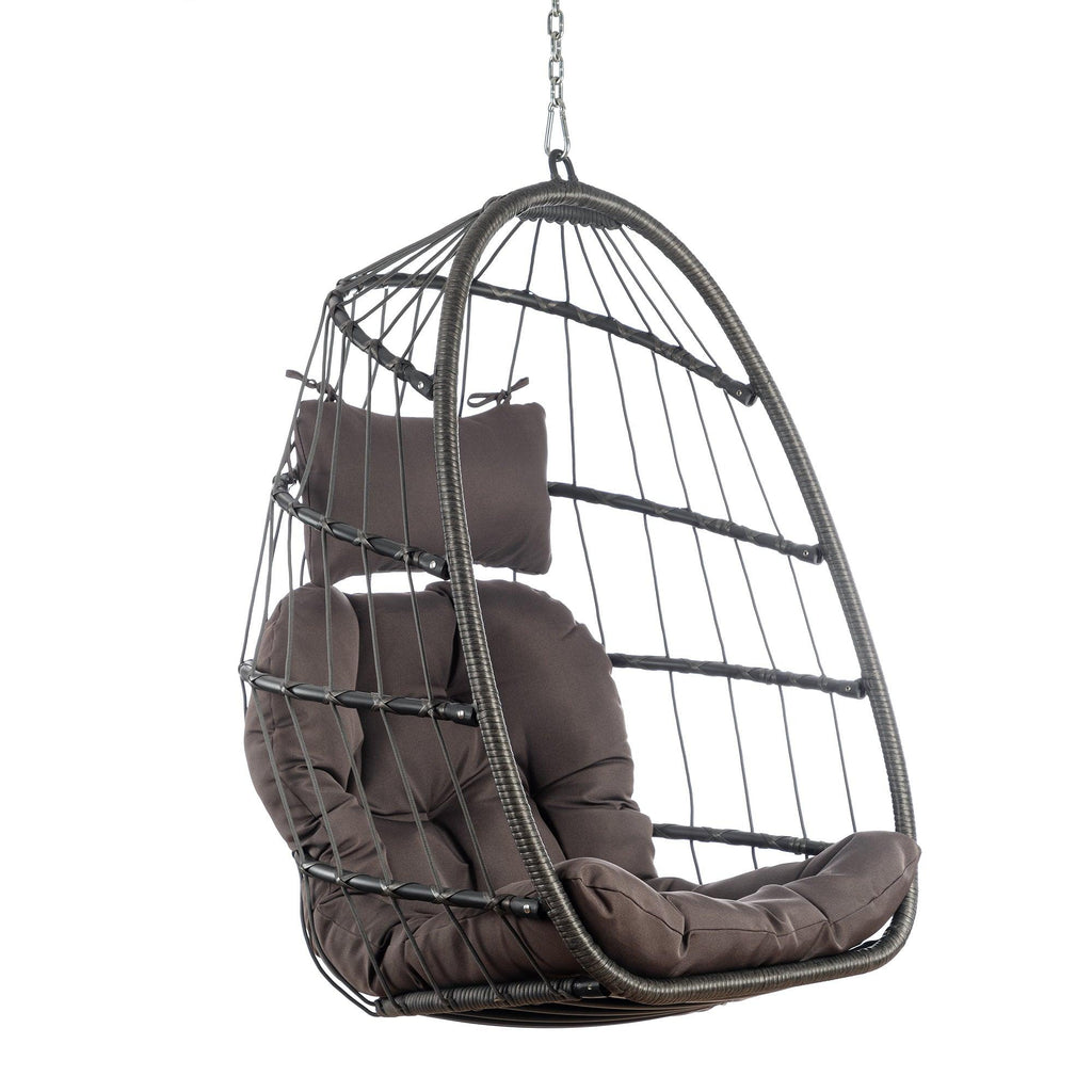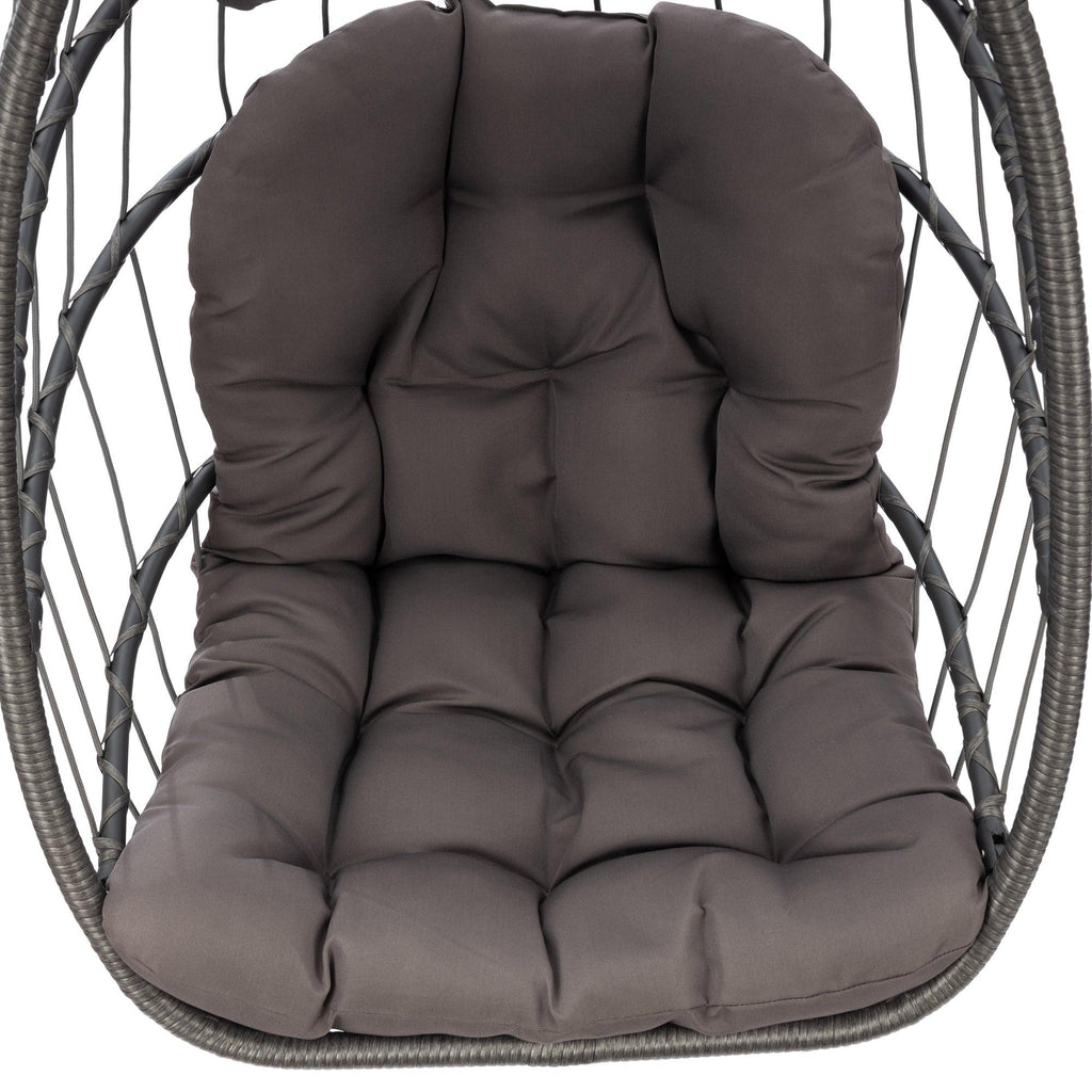 - 【STURDY AND COMFORTABLE】 Seat and frame of hammock chair is constructed of polyethylene rattan resin wicker wrapped around a aluminum frame for weather-resistant protection, strength and durability; back features nylon rope; Seat cushion and headrest pillow feature a polyester material and polyester fiberfill cores .