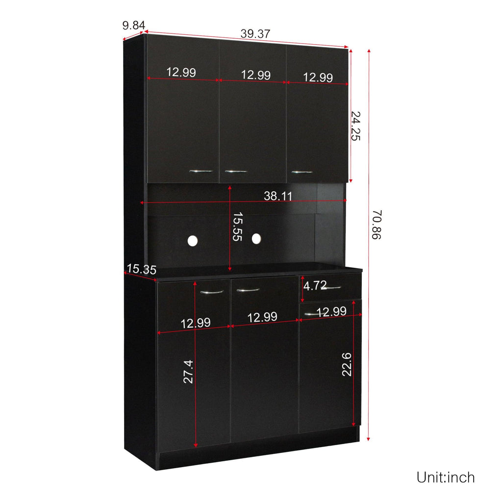 70.87 Tall Wardrobe& Kitchen Cabinet, with 6-Doors, 1-Open Shelves and 1-Drawer for bedroom,Black