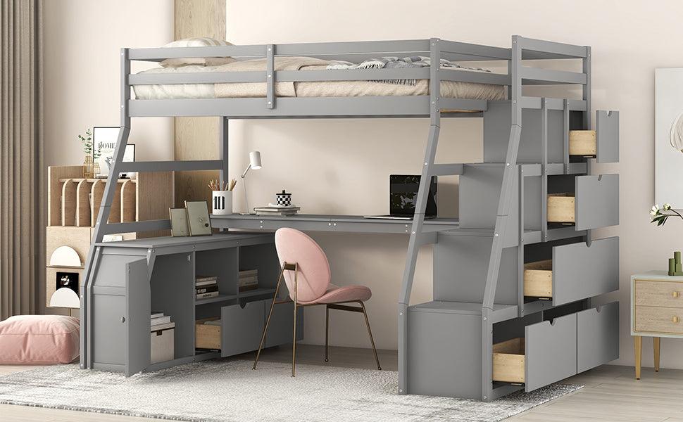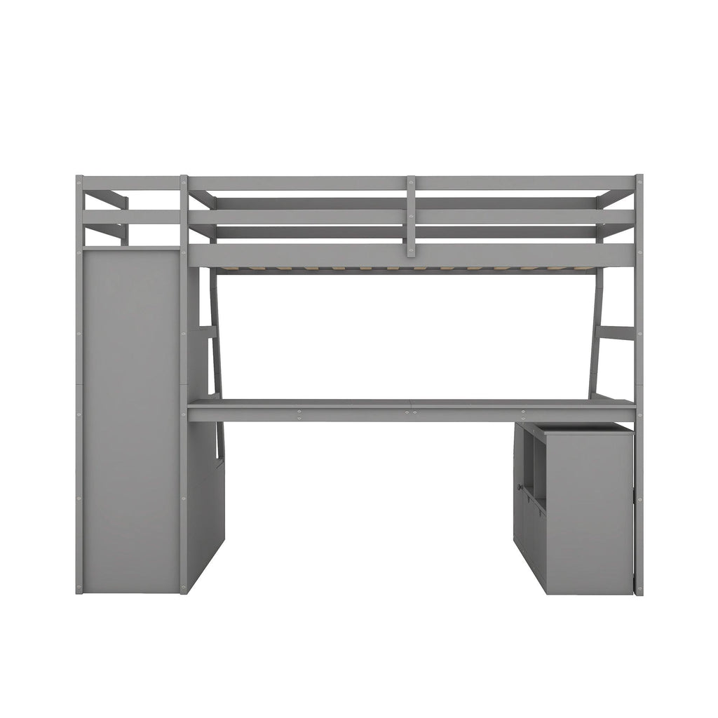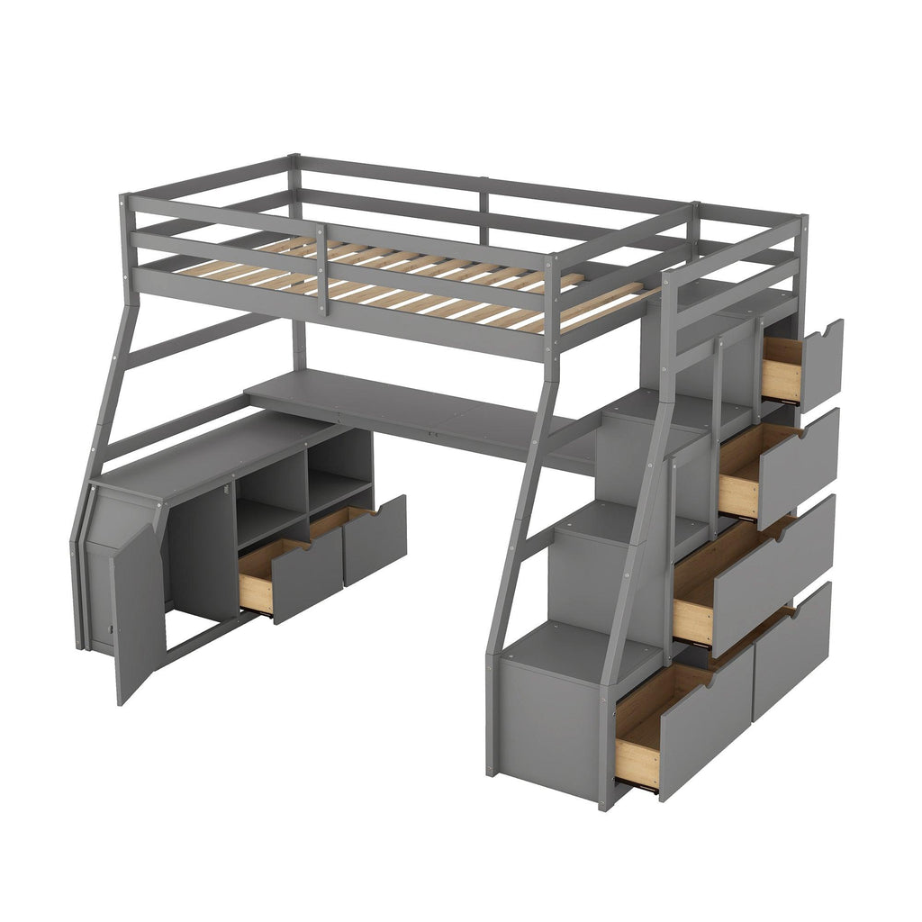 Twin Size Loft Bed with 7 Drawers 2 Shelves and Desk