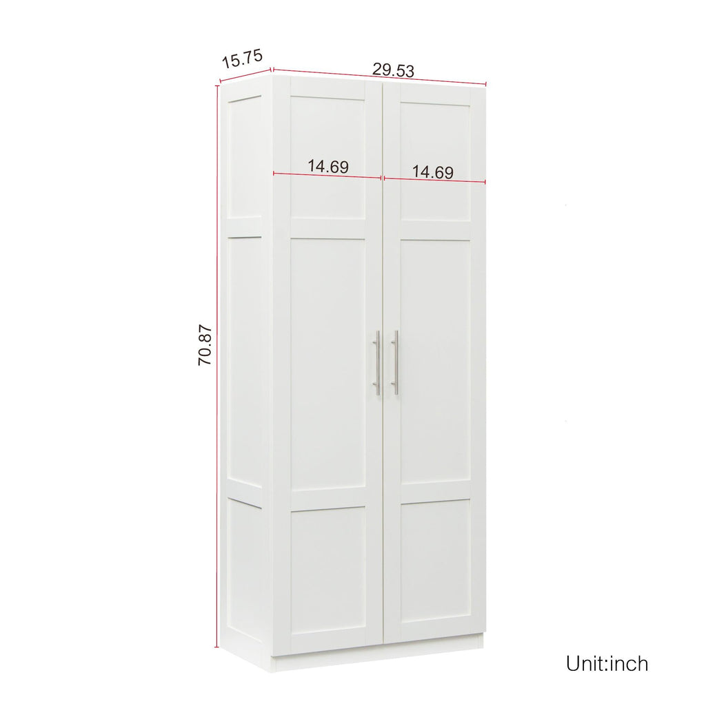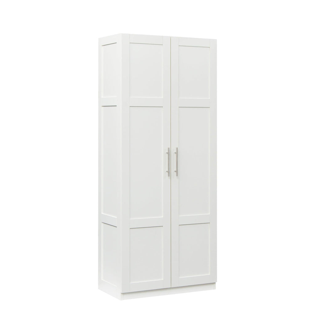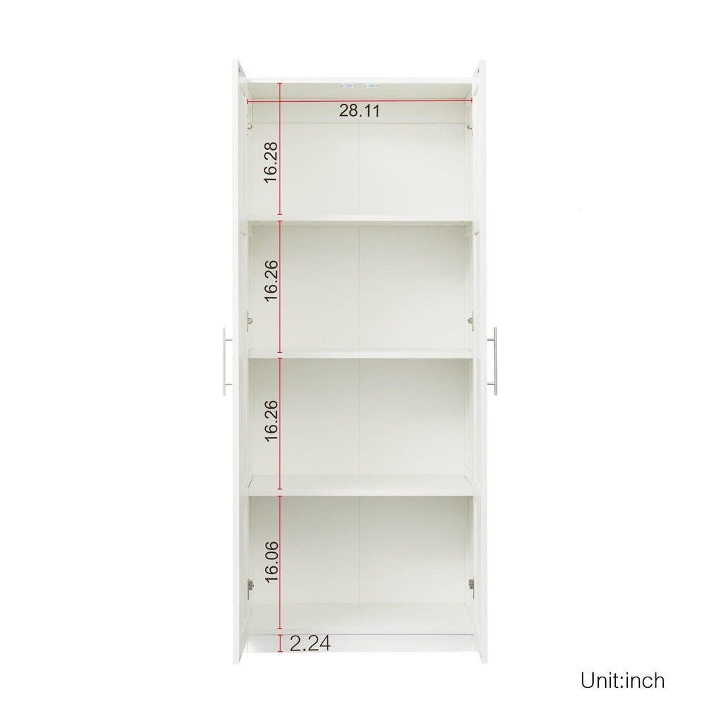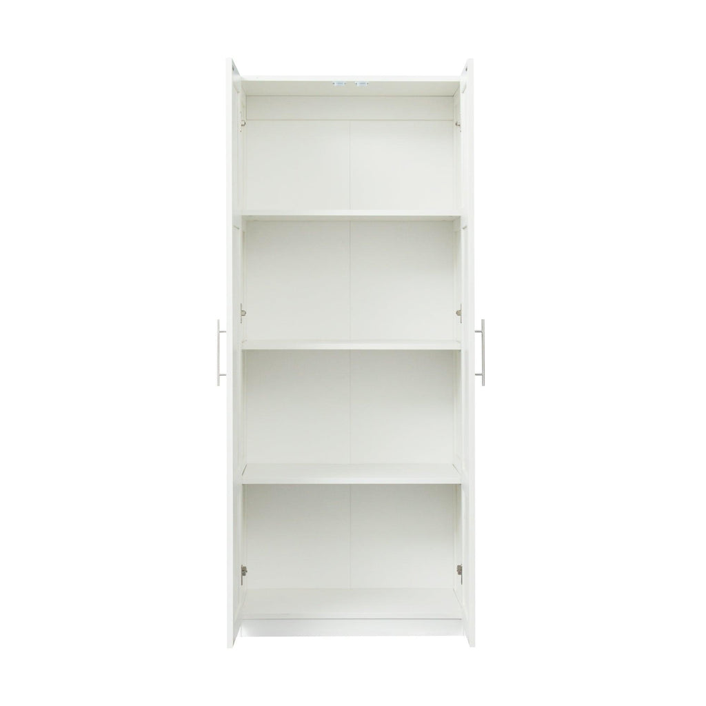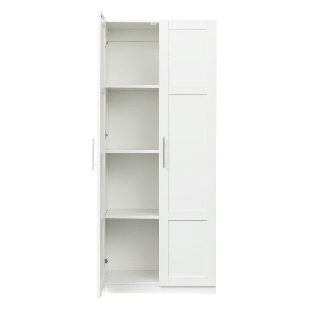 High wardrobe and kitchen cabinet with 2 doors and 3 partitions to separate 4 storage spaces,white