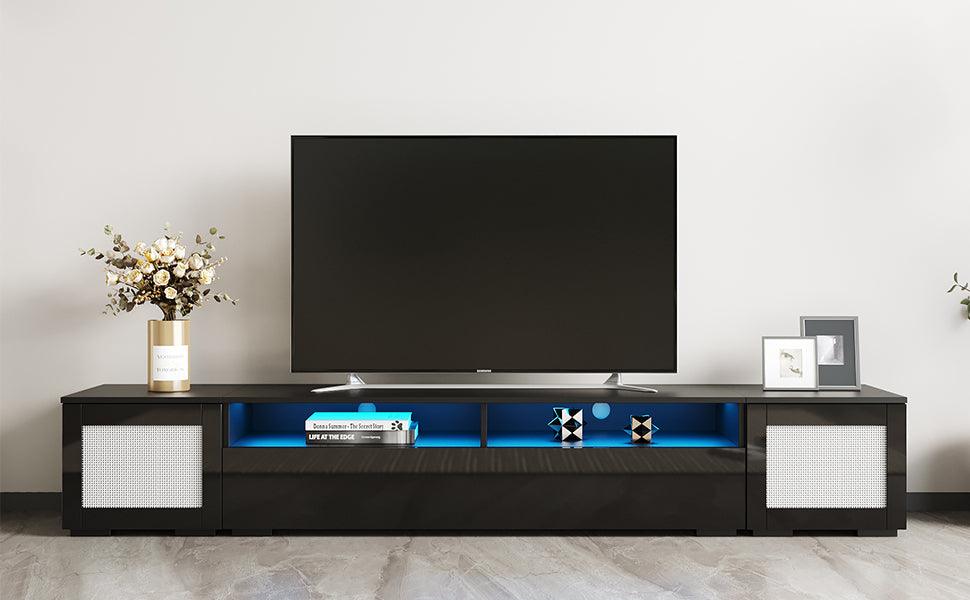 - The middle cabinet has 16-color LED lights to create a stylish and romantic atmosphere, great for a movie or a party.