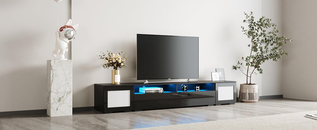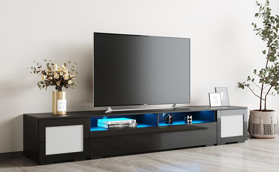 The middle cabinet has 16-color LED lights to create a stylish and romantic atmosphere, great for a movie or a party.
