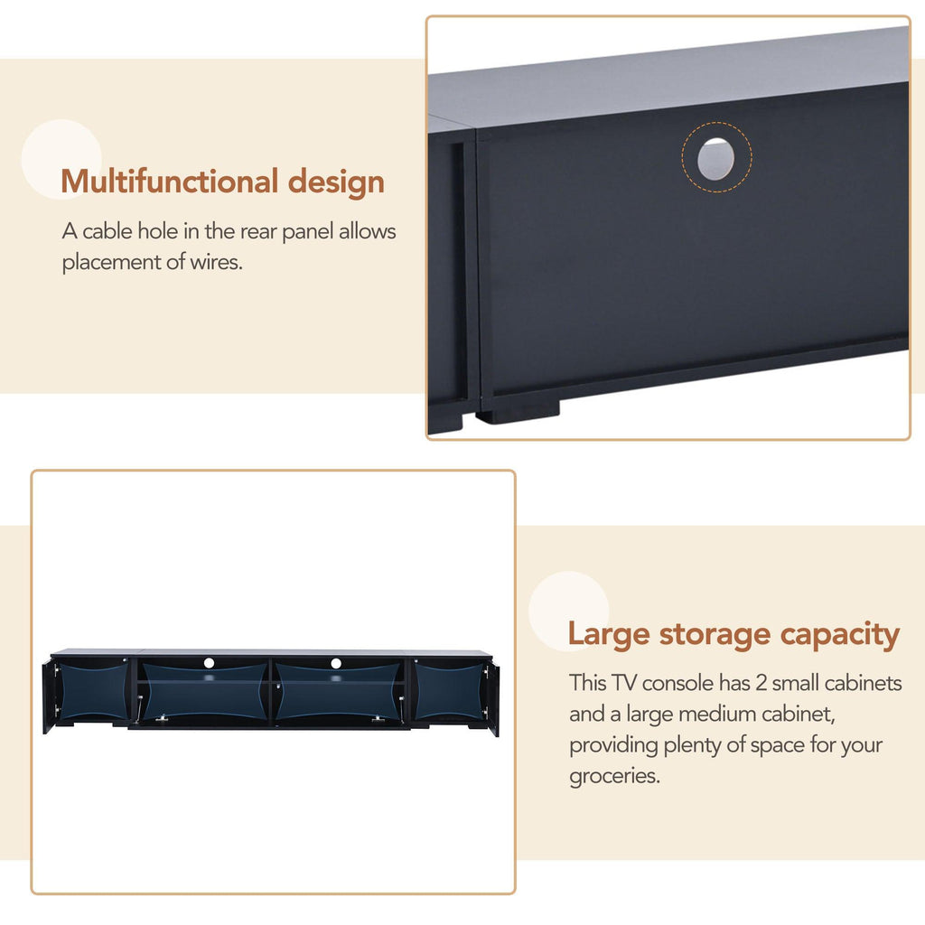 - This TV console features 2 small cabinets and a big middle cabinet, providing plenty of room for your grocery. Cable holes in the back panel allow wires to be placed.