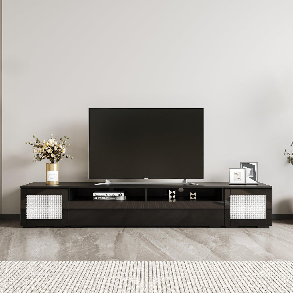 The combination of UV high gloss sticker and rattan decor brings a unique visual experience to this product.