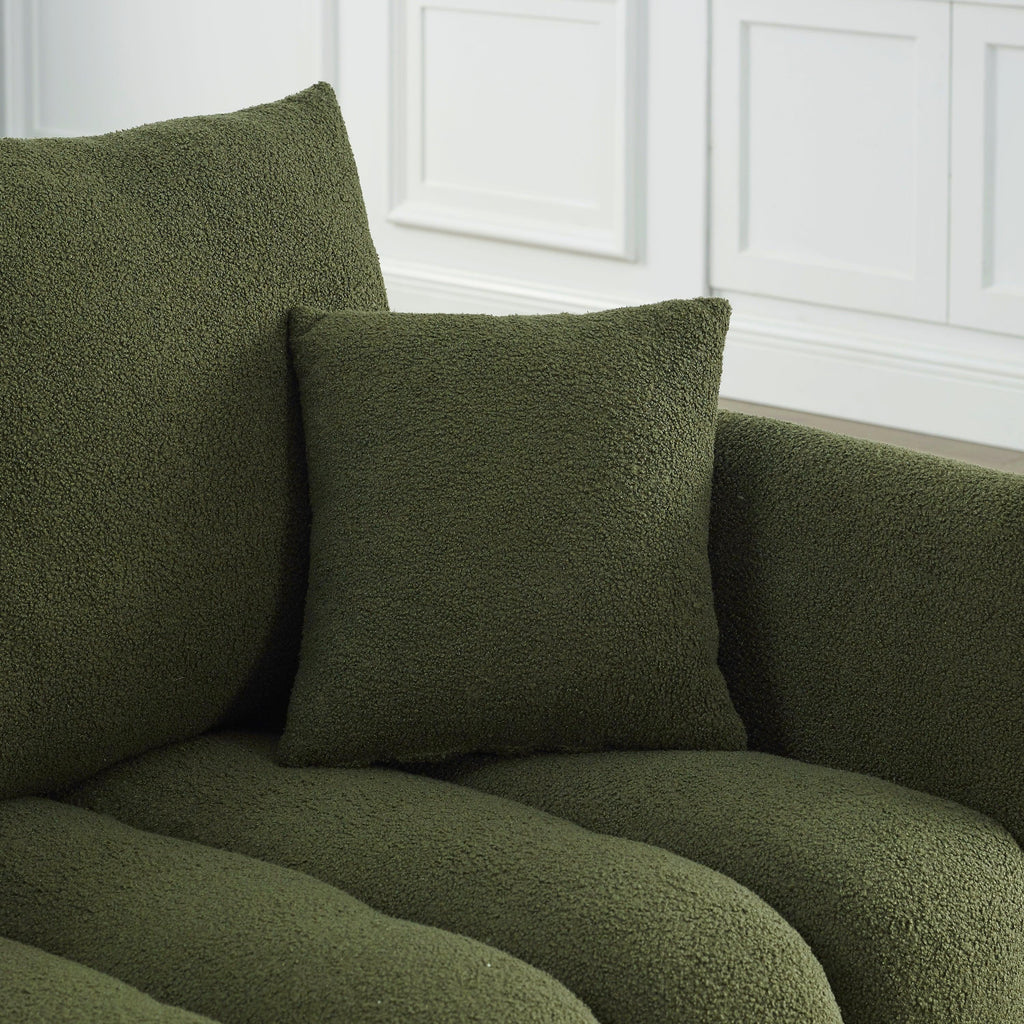 - The modern sofa is made of soft teddy fabric plus foam padding to provide you with maximum comfort. Sitting on it, you will be surrounded by ultra-soft plump backrests with optimal comfort angles, making you feel like you are sitting on a cloud. Add this sofa to make your living room space more sophisticated and elegant.
