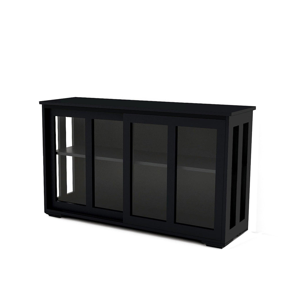 - Large Storage Space:Two sliding doors which are more convenience open and close the doors. Two shelves inside enlarges your storage demands, and the middle shelf can removed or adjust height to reach out your different storage requires.Spacious top for displaying kitchen tools or as a coffee table top.