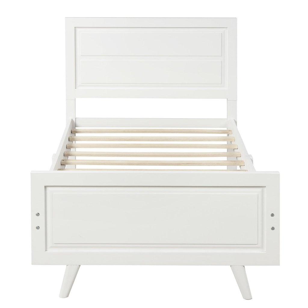 This Wood Platform Bed with Headboard & Footboard is a minimalist, stylish bed base that works well with a variety of decorating styles and makes it easy for you to beautify the look of your bedroom. The bed contains an integrated headboard. It fits most Twin-size mattresses and does not require a box spring. This bed frame is an excellent addition to any bedroom, do not miss the chance take it home.