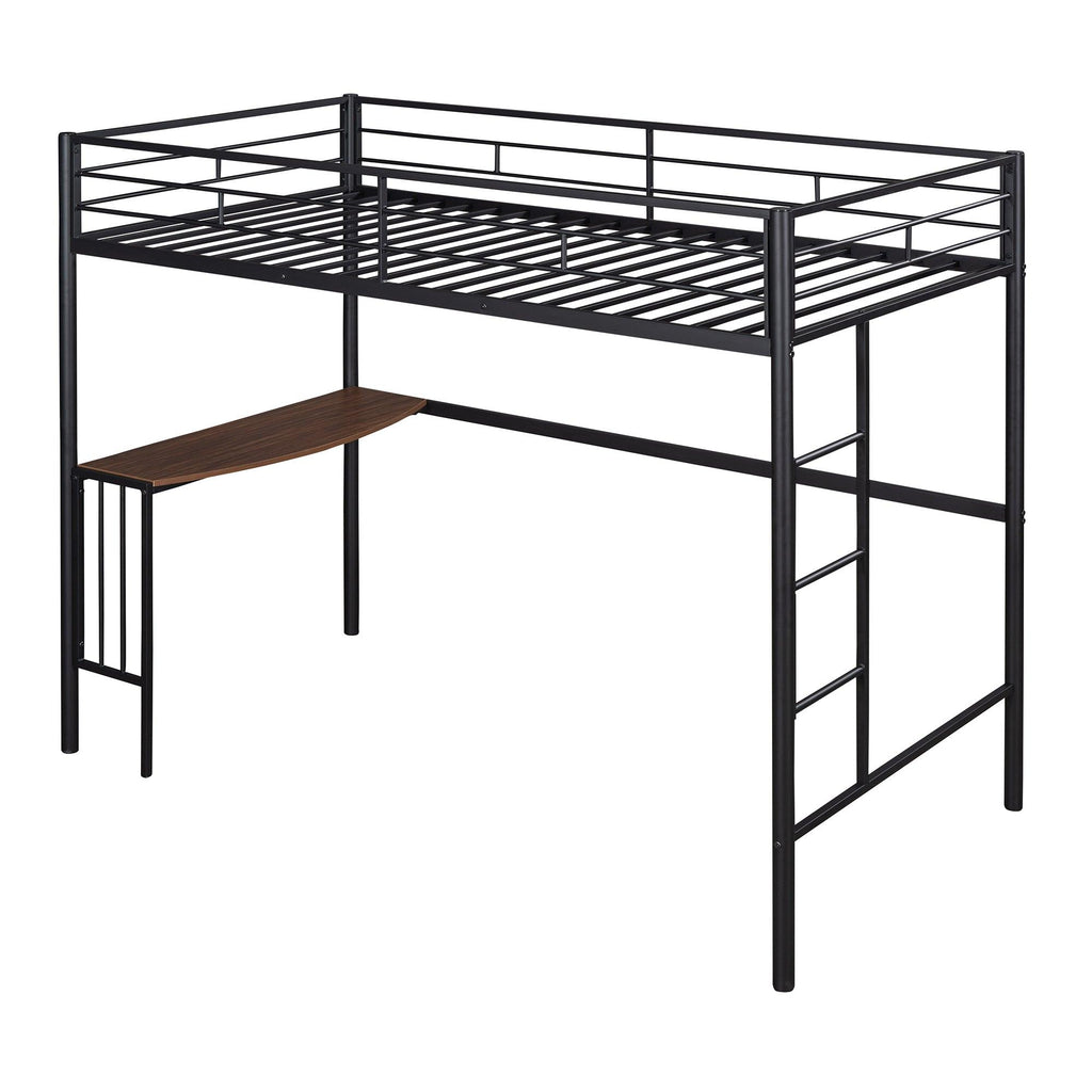 A simple yet appealing fusion of style and practicality, this metal loft bed is designed to bring your abode extra sleeping space without excessively encroaching on the limited floor space compact rooms, all at an affordable price. Ideal for small bedrooms, the extra space underneath the loft bed creates a semi-enclosed area and allowing your family to have their own space that they can customize and decorate as their own. With a surface manufactured from solid MDF, the build-in desk is sturdy enough to withstand heavy loads from textbooks to décor. The metal frame construction finished in a powder coating has heightened durability to resist against rusting, erosion, scratches, and supports up to 250 lbs. Upper metal slats are built-in and offer solid support and prevent untimely mattress sagging. Designed for easy assembly, quickly put your bed frame together with the user-friendly instruction manual included.