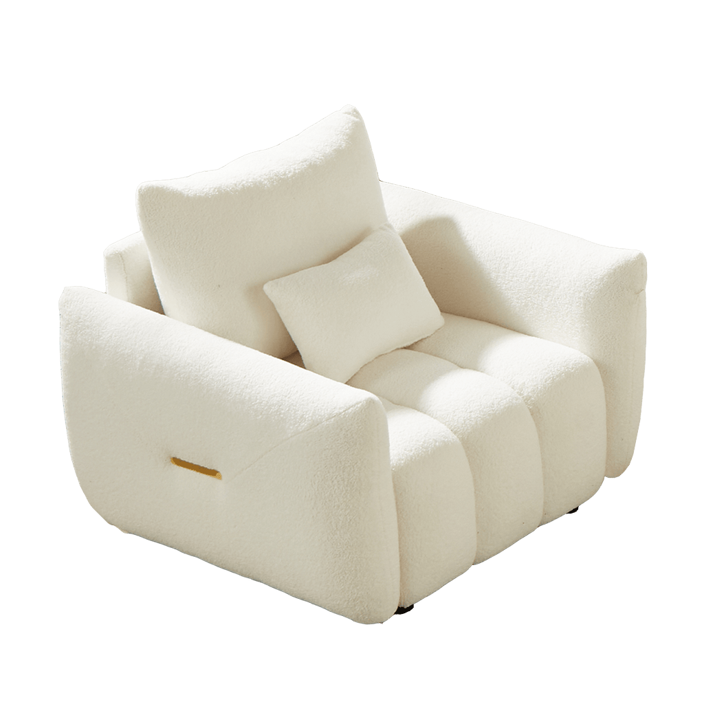- Premium Teddy Sofa for a skin-friendly and cozy experience. With a rounded and plump appearance, like a big cake, this sofa chair is an ideal decoration for living room, bedroom, guest room, lounge, extra room and more.