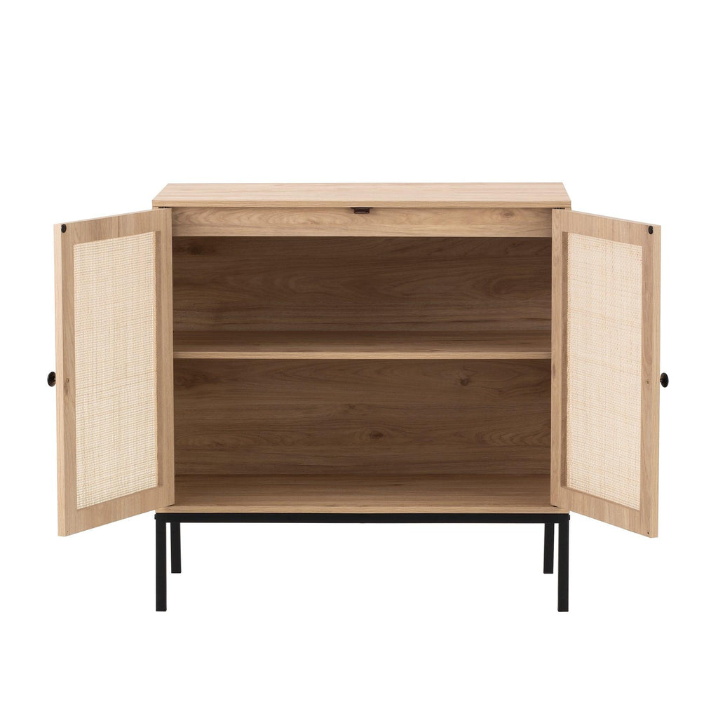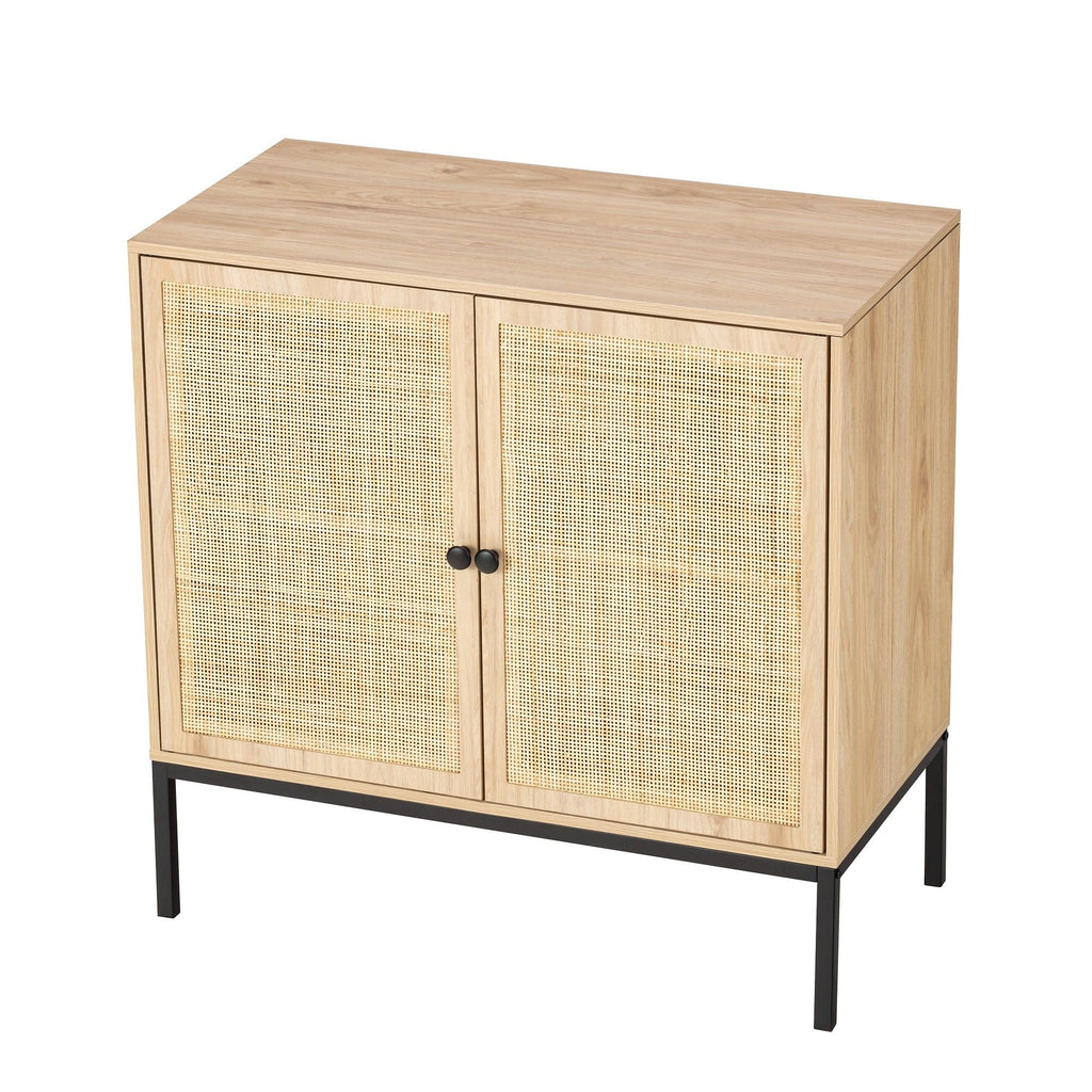 - 【MULTIFUNCTIONAL CABINET】 - All-purpose storage cabinet can meet your various storage needs as a sideboard or buffet server cupboard in dining room or kitchen. Waterproof paint on the cabinet surface with natural rattan decorated door can effectively prevent moisture so it can also used as a bathroom floor cabinet. The classic cabinet and wood color doors combined retro and modern, it can be suitable for various styles of home decoration, adding a touch of unadorned elegance to your space.