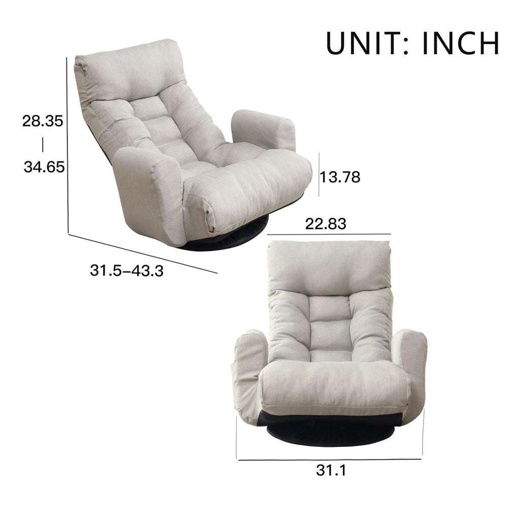 About this item Adjustable Floor Gaming Sofa Chair- This lounge chair is originally designed to make your leisure time more comfortable, we have a bonus armrests for your nice reading time. Help you relax your body at a cozy position. Adjustable Lounge Sofa Chair - This fully adjustable sofa chair can be adjusted at 5 different angles, which is the most comfortable angle for your body spine line.Every adjustable position of this sofa is ergonomics, and in every position you could feel cozy. You could use it to take a nap or watching TV. It could totally let your enjoy your free time. Thick and Comfortable Padded - The sofa chair is generously padded with high resilience cushion. It perfectly fits your body curve. You can easily spend a day reading a book on this comfy spot without any fatigue. Solid and Durable Steel Frame - The lounge chair uses reinforced steel frame. It lasts for a long time with no warp or damage. Bottom 360 degree rotatable,Adjustable head and waist.