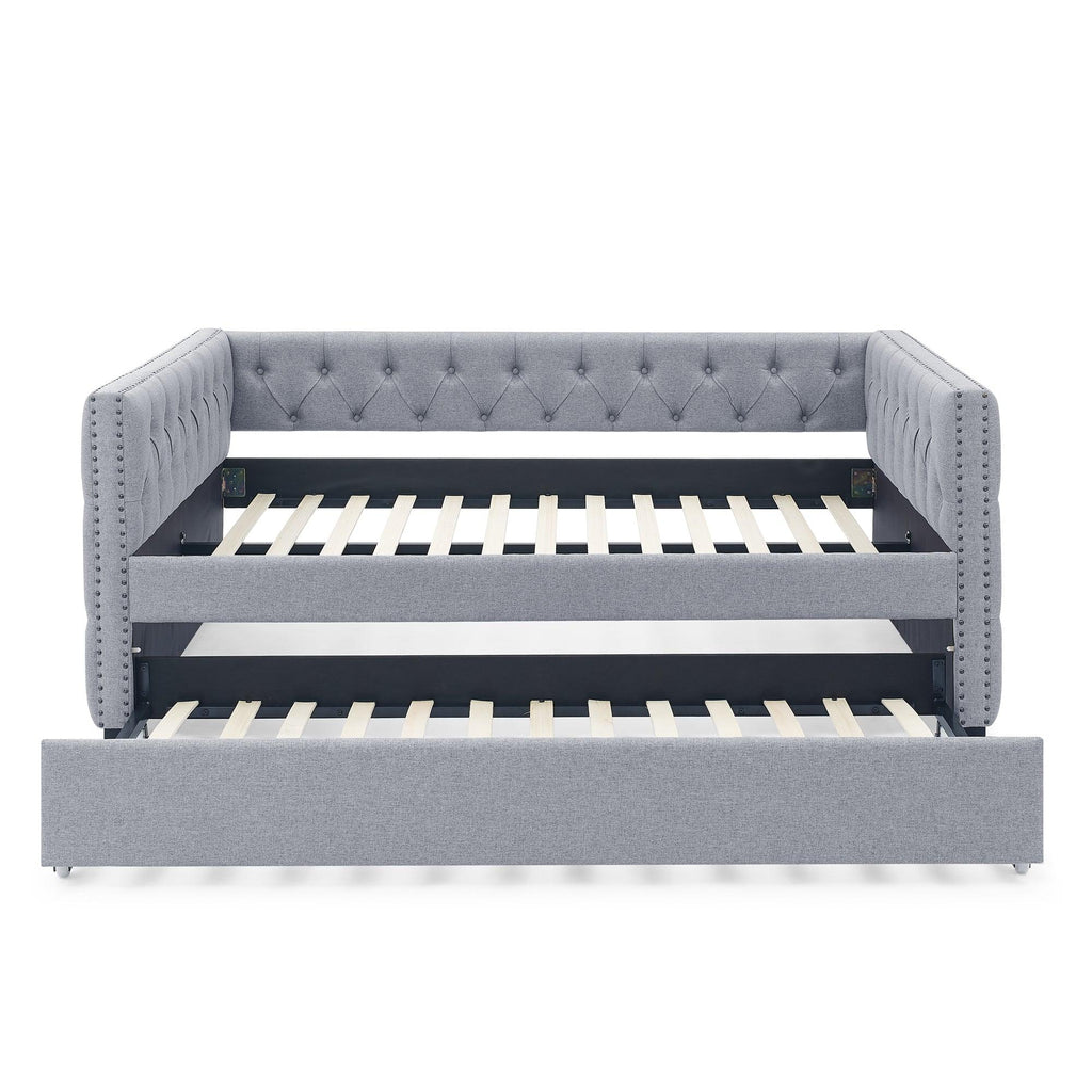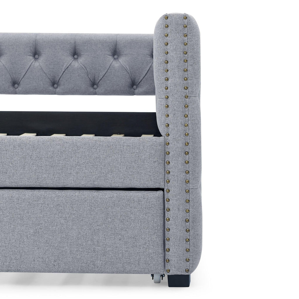 - Stunning Look. This mid-century - inspired daybed features a button tufted armrest which creates an elegant look. Square arms decorated with nail head trimming and edge fold design blends chic details with classic style. This daybed lends a sophisticated air to your home.