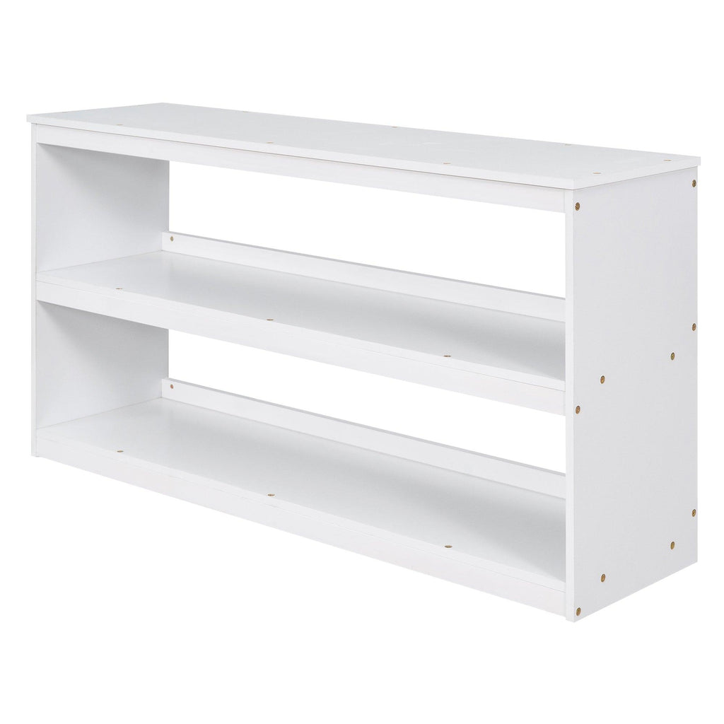 Crafted with high grade manufactured pinewood, enjoy the Loft bed in the shades espresso, gray and white to match the color scheme of any room. Designed with a loft structure, enjoy the space underneath used to house storage drawers and a portable desk fitted with base wheels. When the desk is needed, simply roll it out from under the loft for more workspace and an instant engaging underside fort area for your family to play in and let their imagination run wild. Three underside storage drawers coupled with a two-tier bookshelf provide plenty of storage options for you to help keep space tidy and organized. The built-in three rung ladder provides easy access to the twin sized bed featuring full length safety guardrails.