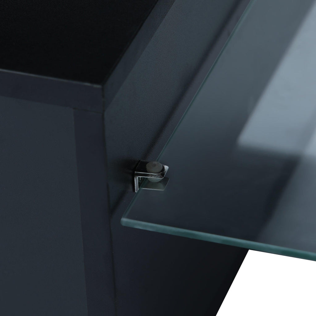 - This TV stand with LED comes with 16 RGB LED BACKLIGHT, 4 LIGHT MODE & BRIGHTNESS ADJUSTMENTS.Equipped with REMOTE CONTROL makes changes of light ever easy.