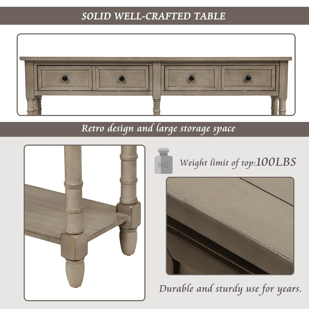 - Selected Material: The console table is constructed with a solid wood frame and legs with a beautiful distressed finish. It is ensured to be stable, strong and require low maintenance through long years of use.