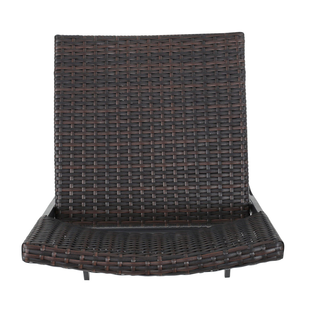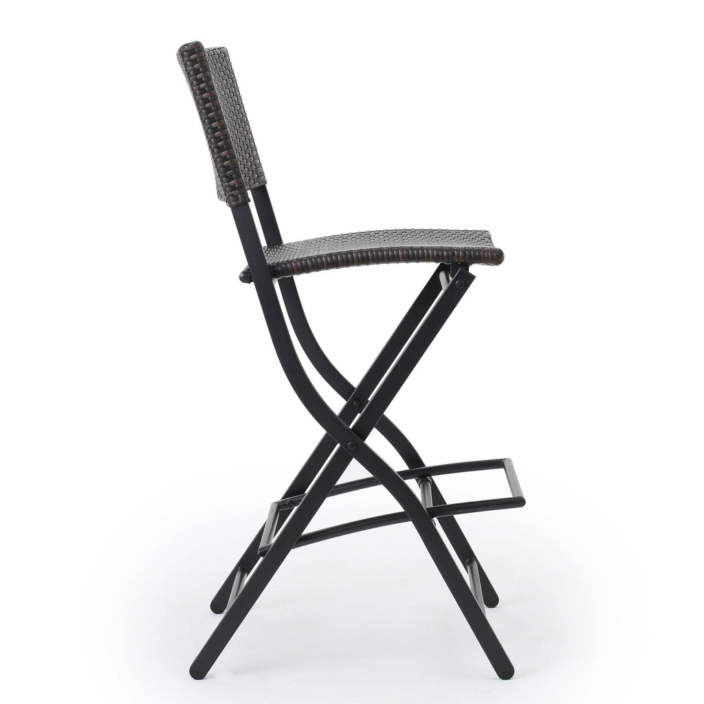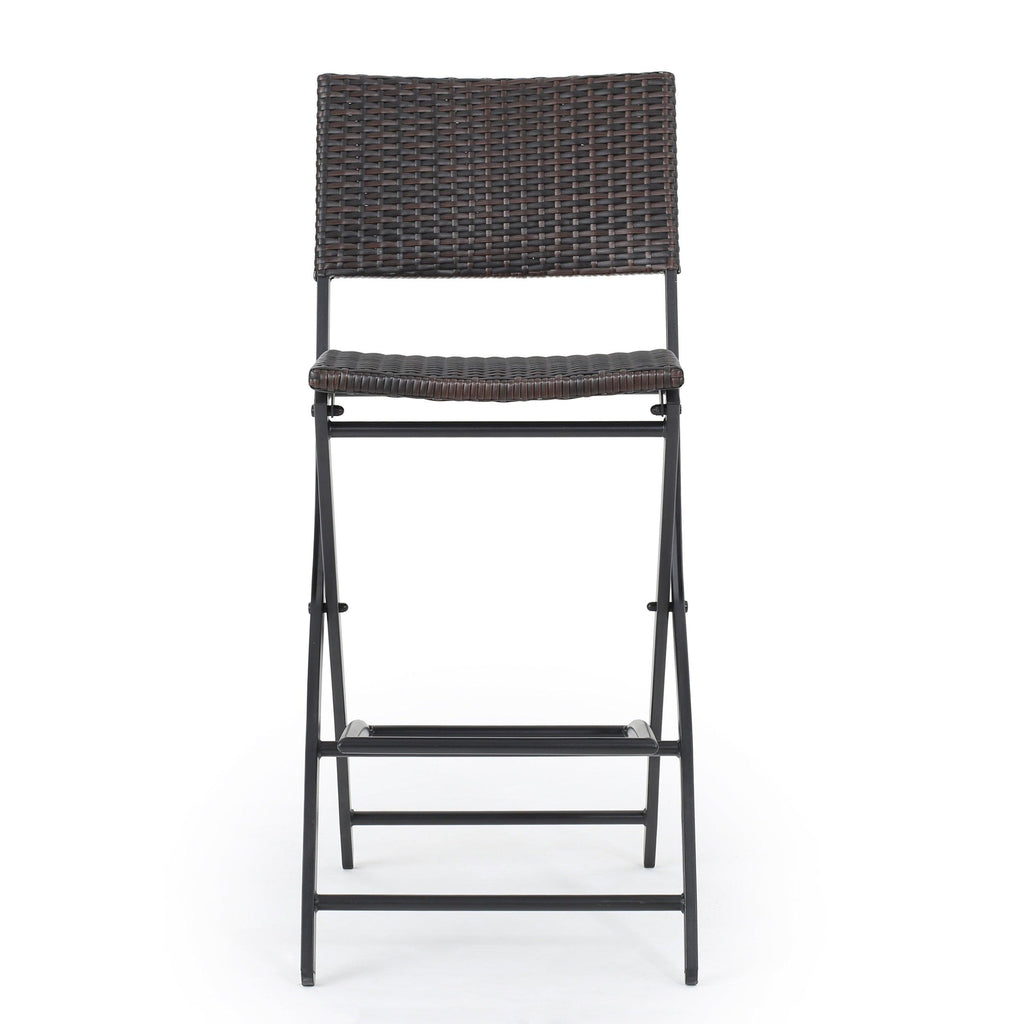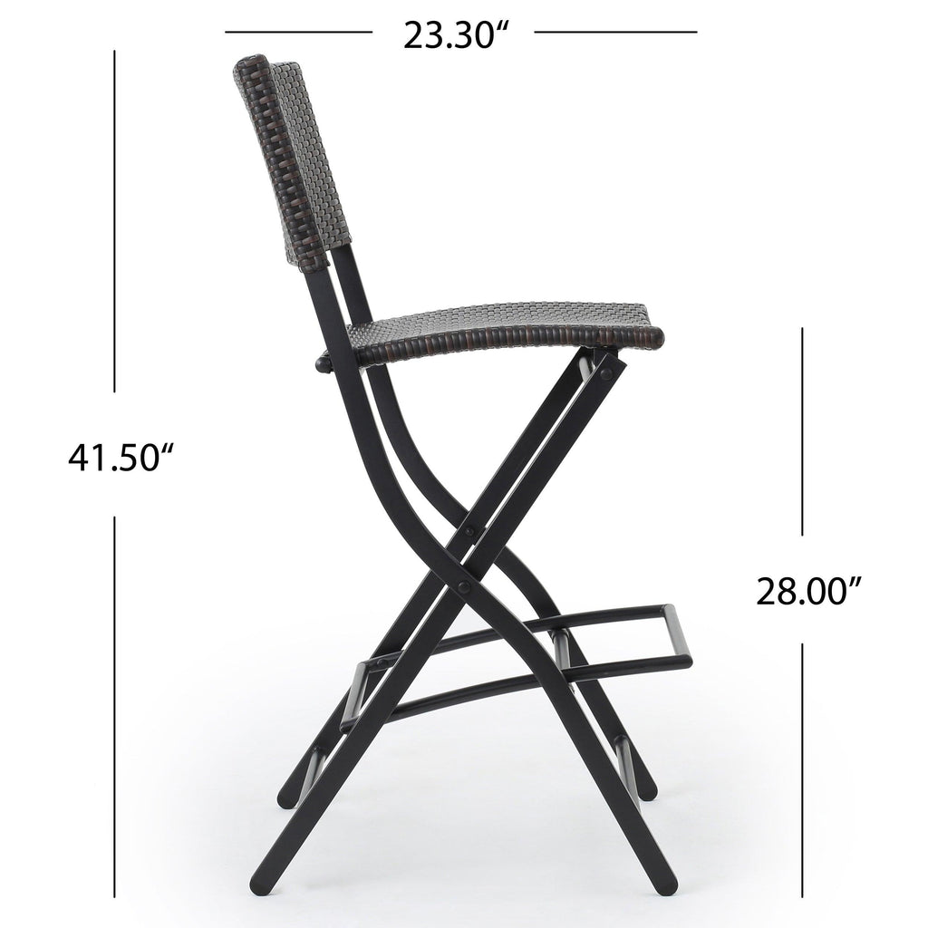 These outdoor barstools are a great addition for any patio. Complete with a foot rest for both comfort and balance while seated, these barstools do it all. They folds, and are made with sturdy iron wrapped in top quality wicker to provide you the best product. Enjoy these barstools in your backyard today!