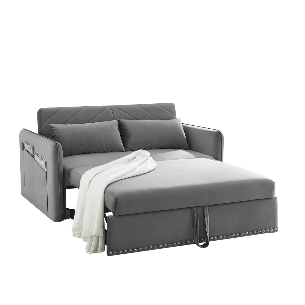 1. Multi-position adjustable pull-out sofa bed with bedhead, By pulling out the bed frame under the seat, this double position sofa can be quickly converted into a bed for resting use.