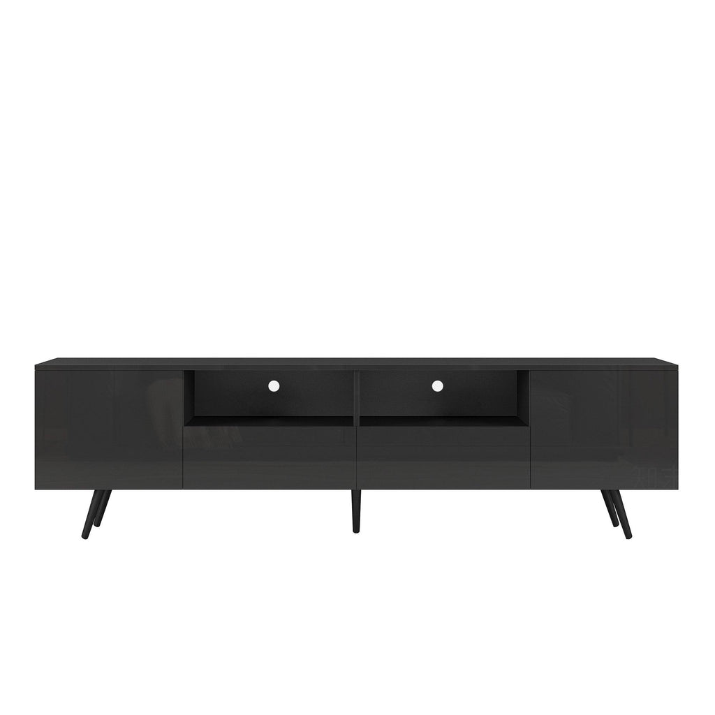- TV stand with large storage and open shelves can be used to store game consoles, media, magazines, daily necessities, remote controls and decorative ornaments, with 2 holes on the back for easy cord management.