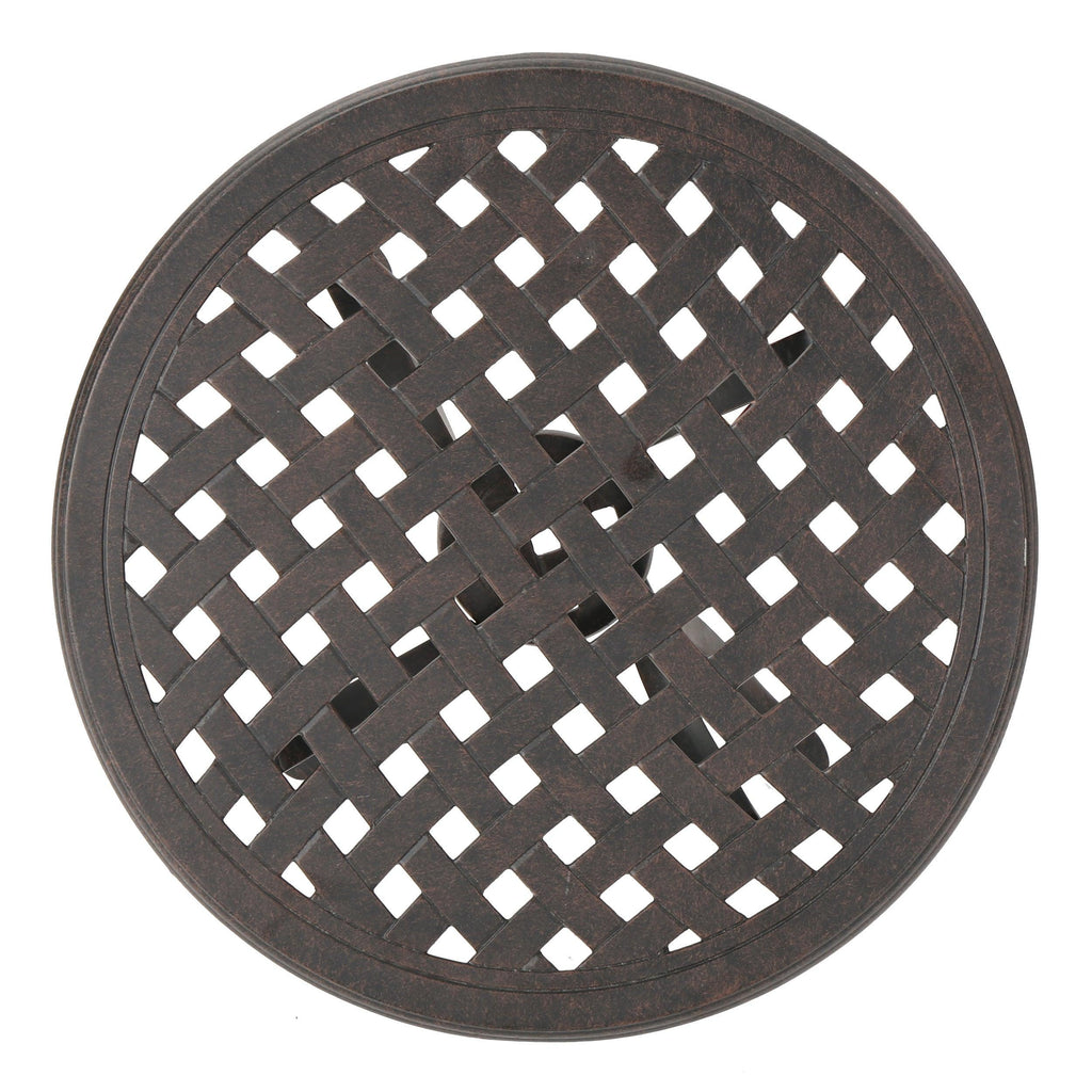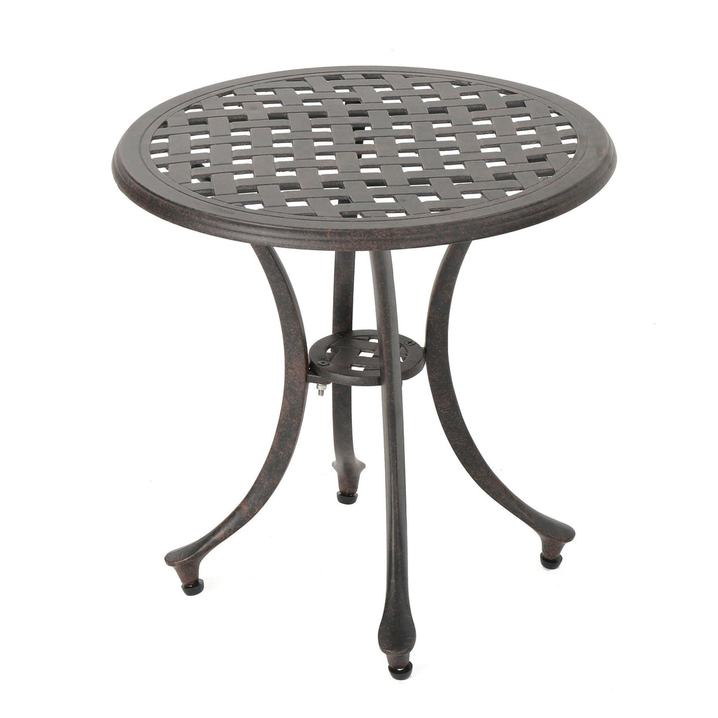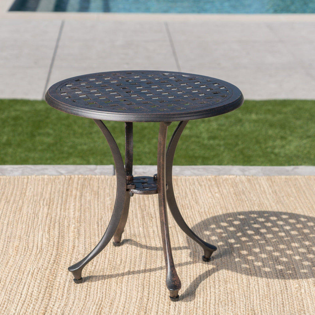 Includes: One (1) Table Material: Cast Aluminum Finish: Bronze Assembly Required Dimensions: 19.25'D x 19.25'W x 19.00'H