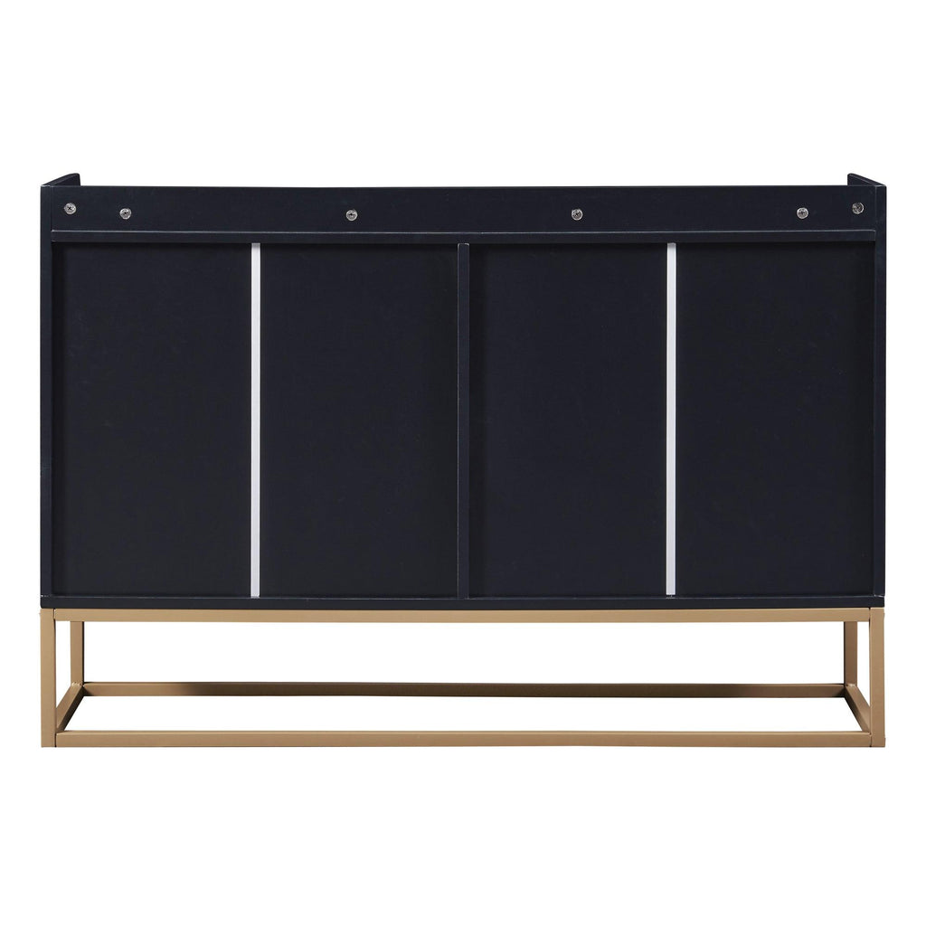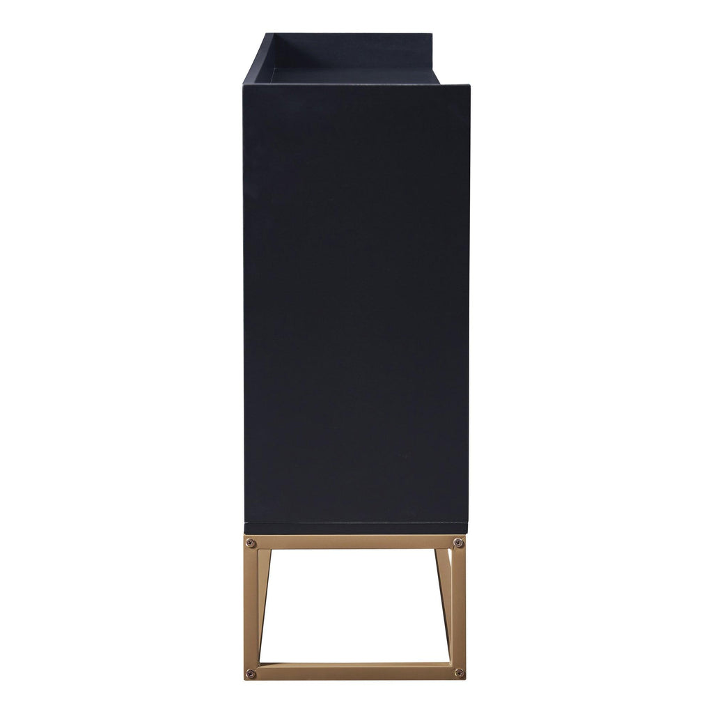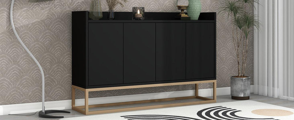- This sideboard buffet cabinet features a black cabinet body with gold metal legs, compact look is very suitable for small space. Whole dimensions: 47.2'L x 11.8'W x 31.5'H.