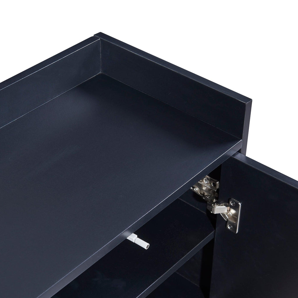 The thoughtful countertop fence design allows you to use the countertop more safely. The internal three shelves provide enough storage space, the left single shelf can be adjusted to three heights as well or users can remove it if need. And the right two shelves divide the cabinet into three storage spaces. can be used to store small appliances, dishes, glassware, towels, wine, and anything else you have in mind.