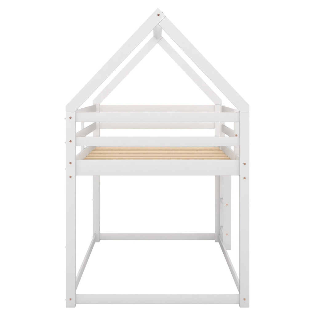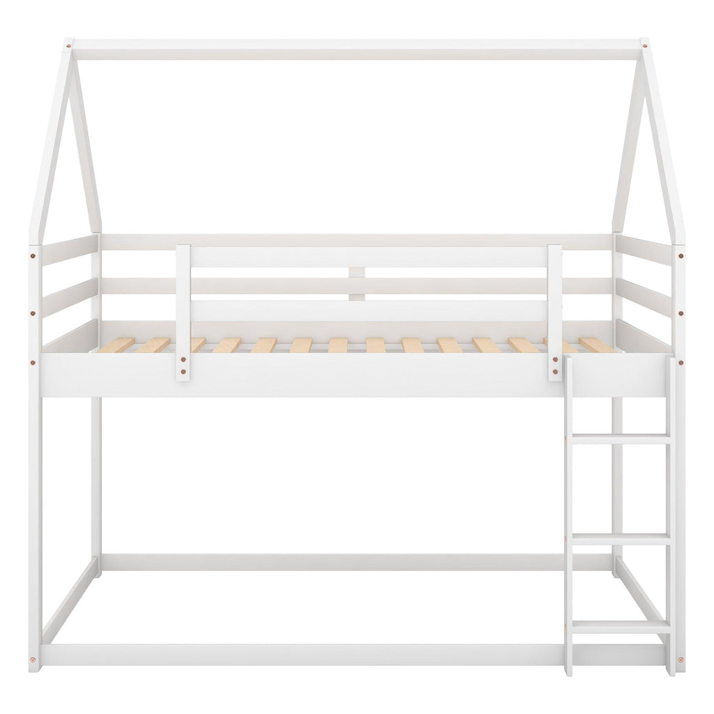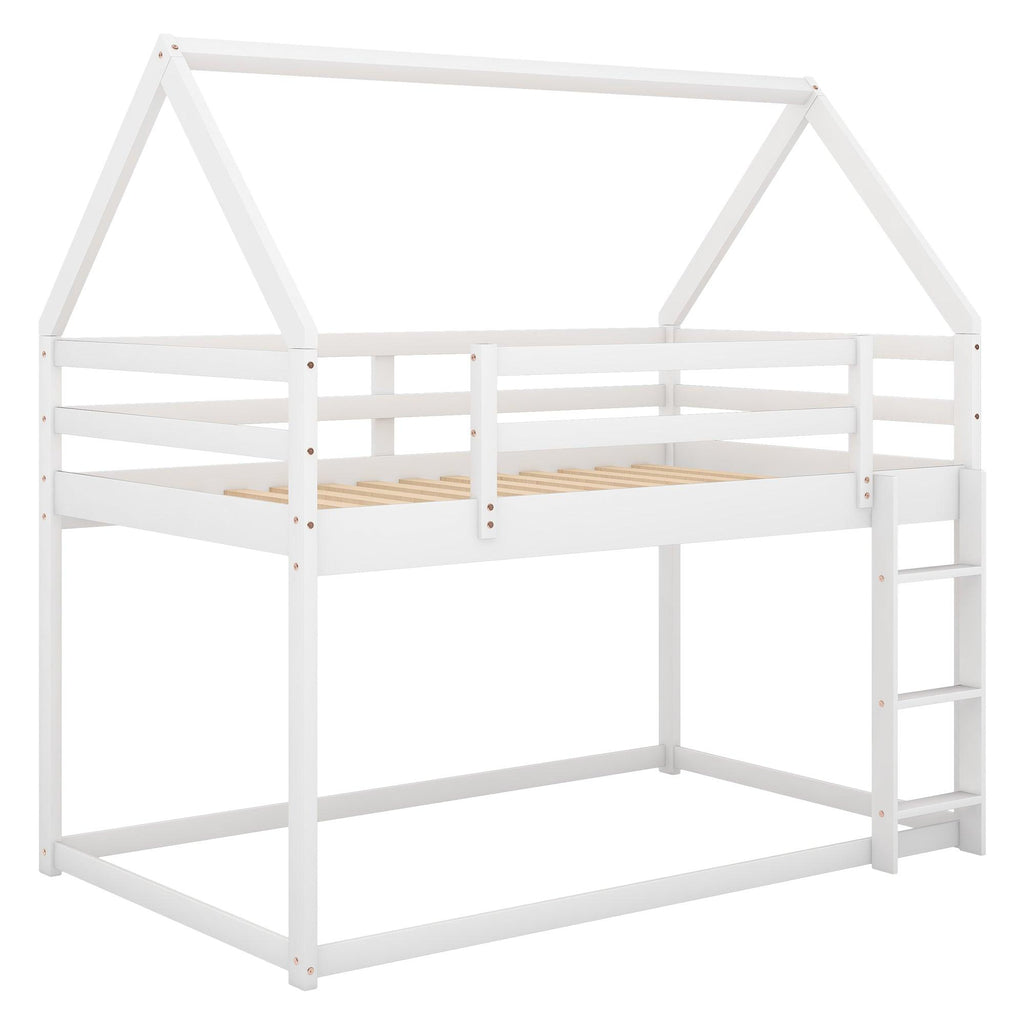 Twin over Twin Low Bunk Bed, House Bed with Ladder , White(OLD SKU:WF197808AAK)