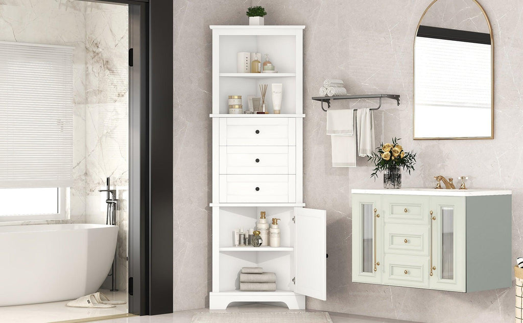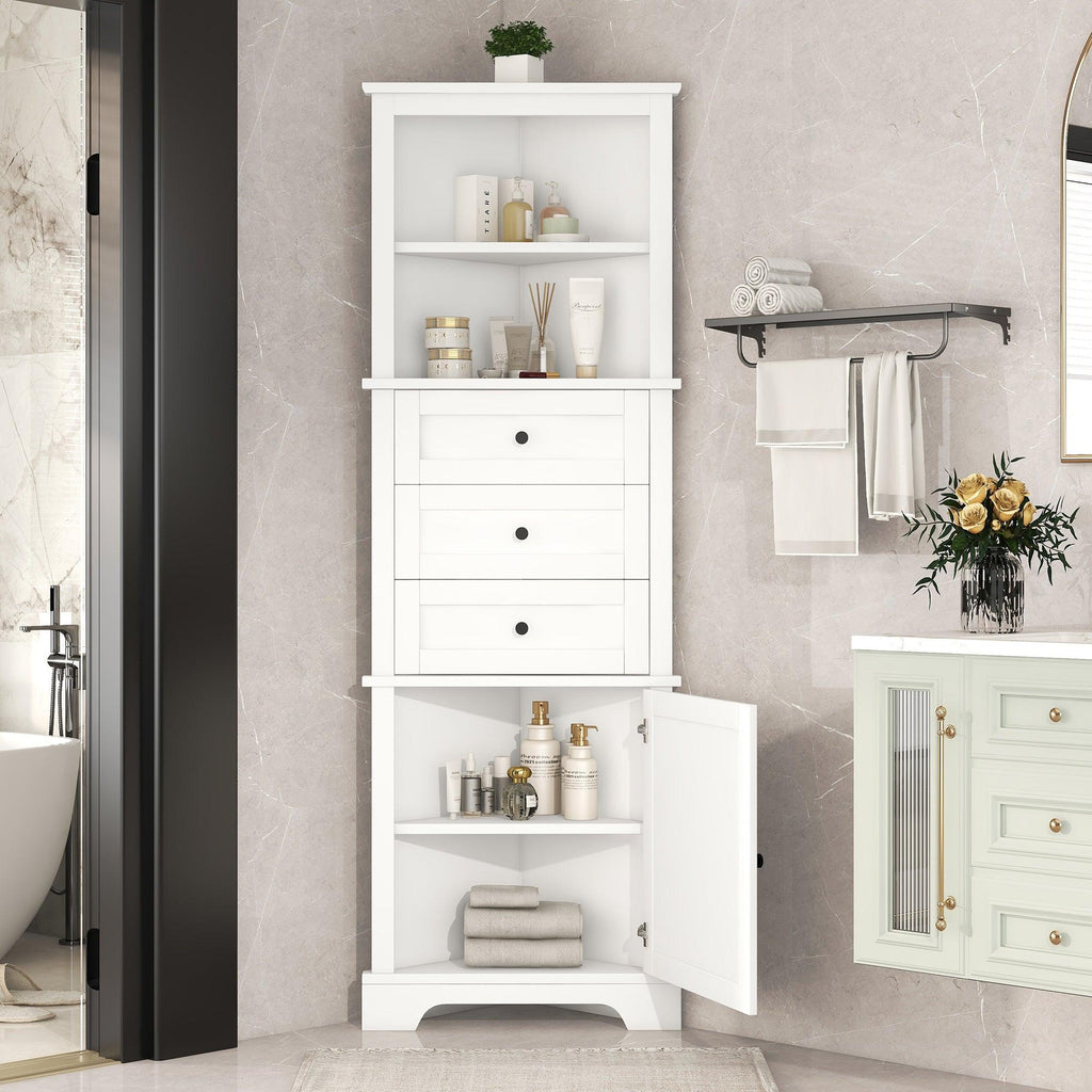 - Wide Application: This tall corner cabinet, placed in the corner, does not take up space. It is suitable for limited spaces, such as bathroom, kitchen, dining room, living room, and anywhere you want. What's more, the whole white body will fit any decoration style. It could add more sleek elements to your home.