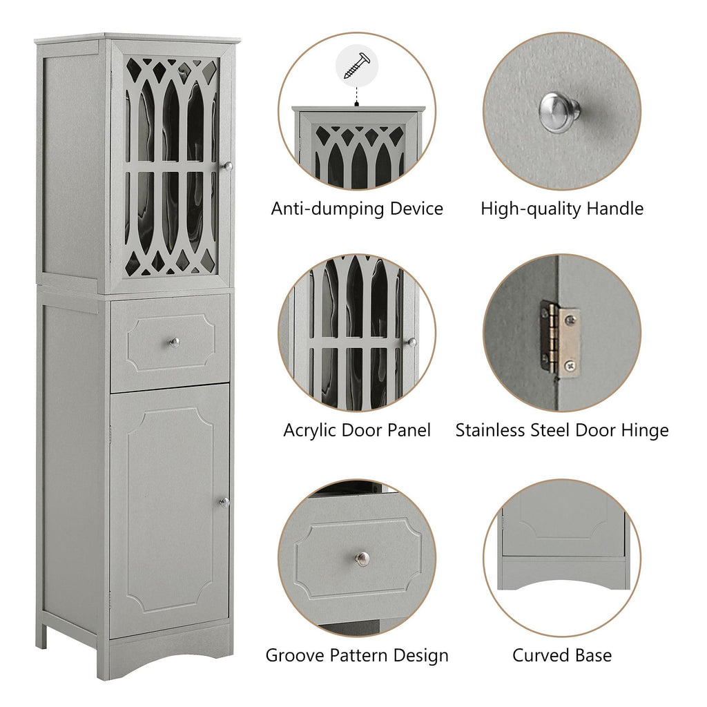- [Ample Storage]: This bathroom cabinet has an above enclosed cabinet with an acrylic panel door, and one drawer and an another cabinet with door below, which can totally satisfy your daily storage needs. Your can put your towels, shampoos, and other bathroom essentials in it.