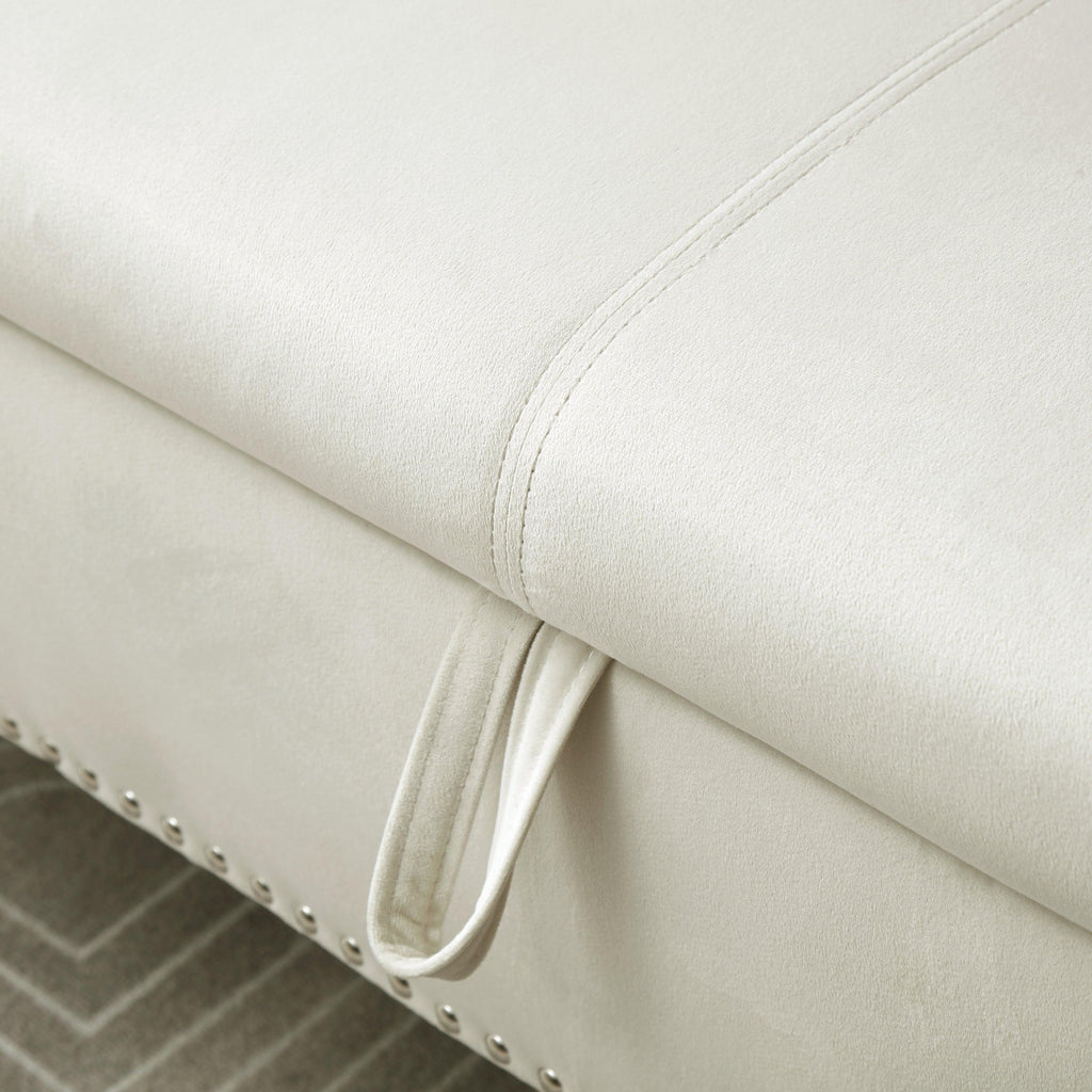 Perfect upholstered flip top storage bench,stylish and functional.With rolled arms,lovely button-tufted,nailhead trimmed and soft pressure hinges, this ottoman is an ideal addition to any interior space. Not only provides large storage room, but also offers you a comfy bench seat.