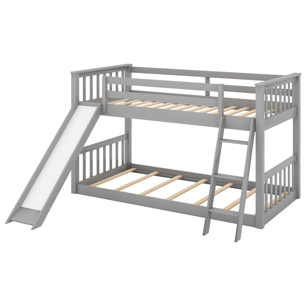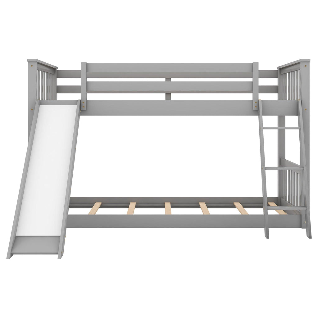 Twin over Twin Bunk Bed with Convertible Slide and Ladder, Gray
