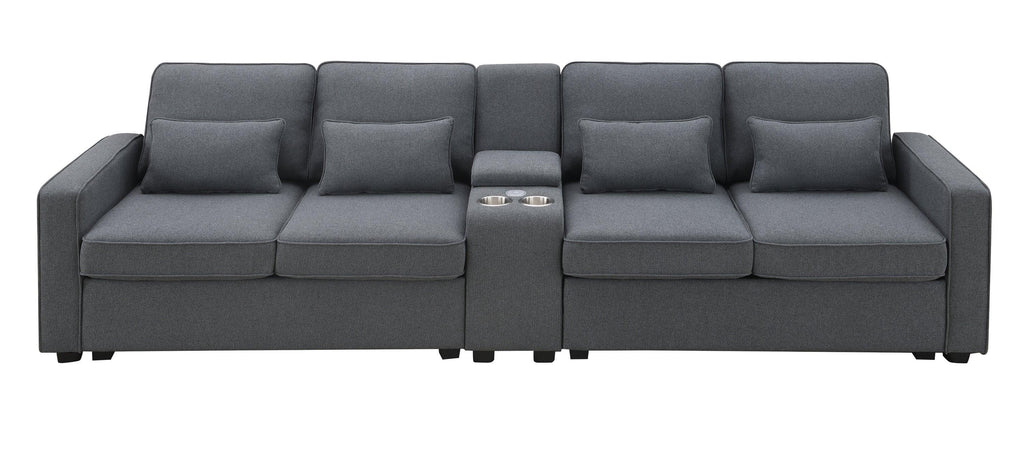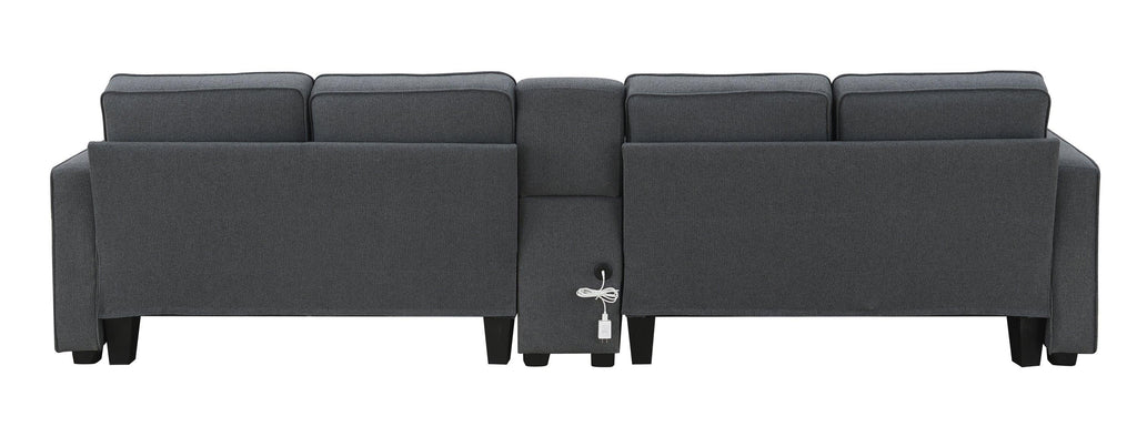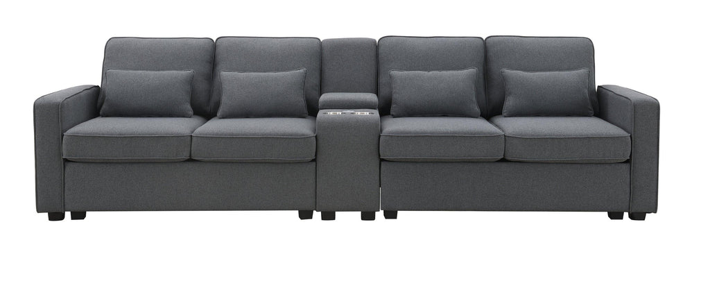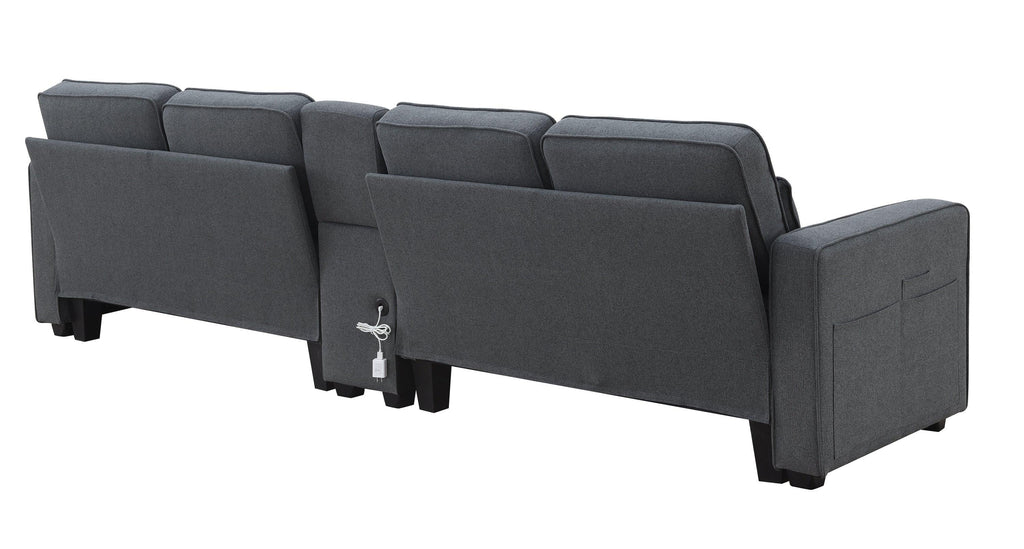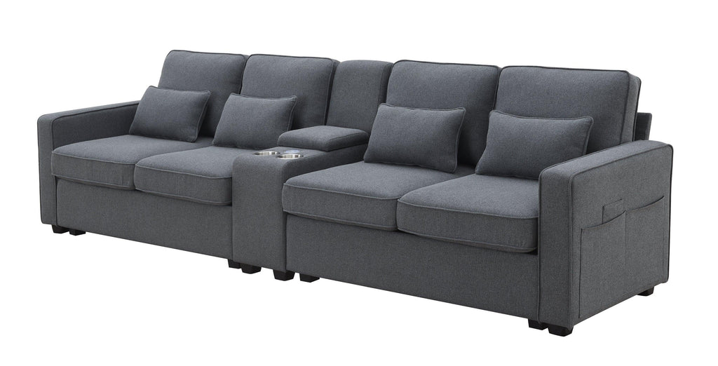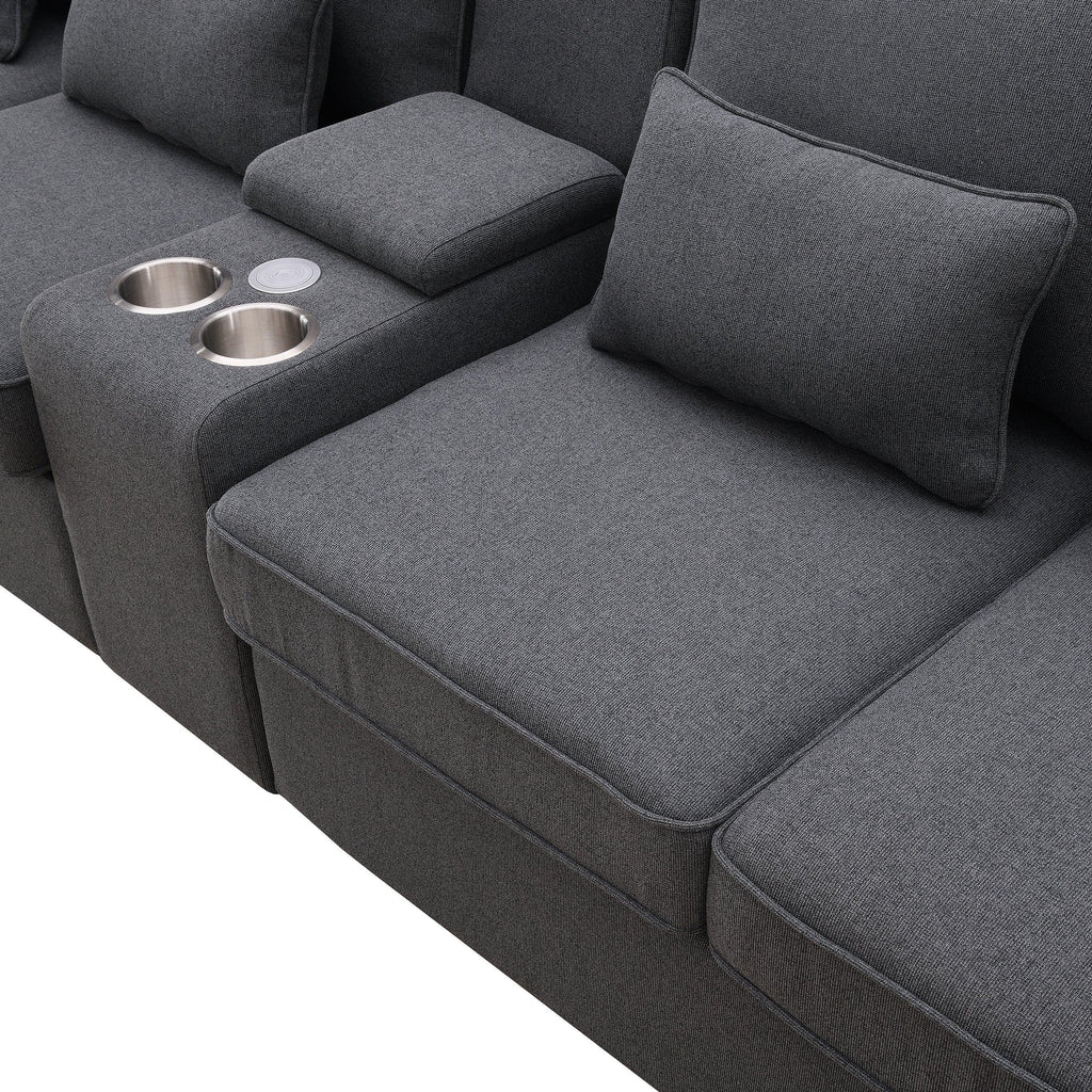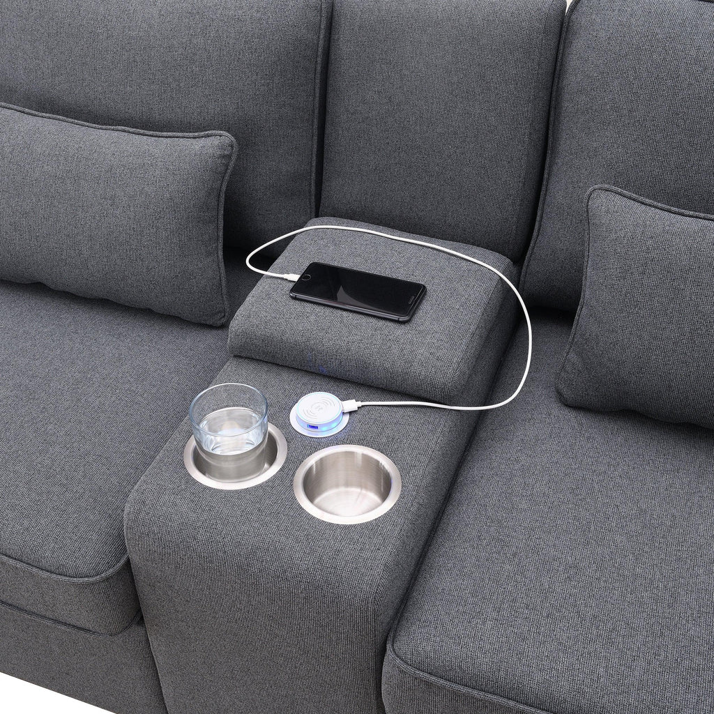 This is a modern and stylish multifunctional sofa,the linen fabric is breathable and wear-resistant.Large seat depth can let you in the most relaxed way possible.For convenience, it has a lot of storage space.In the middle of this sofa,there is a console for storage.on the side,it also has 3 storage pockets of different sizes.The most surprising point is that it can be wired or wirelessly charged.It is very friendly to people who use electronic devices a lot.
