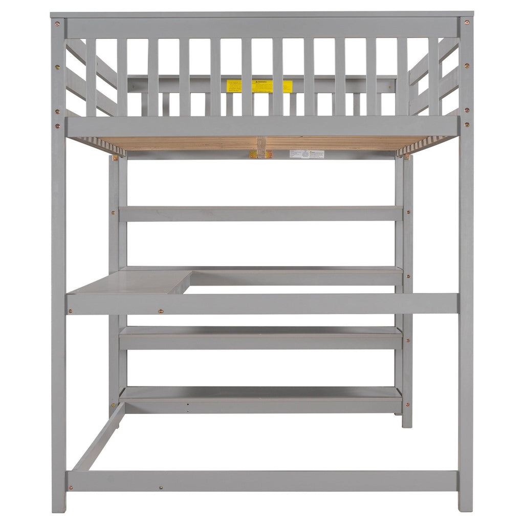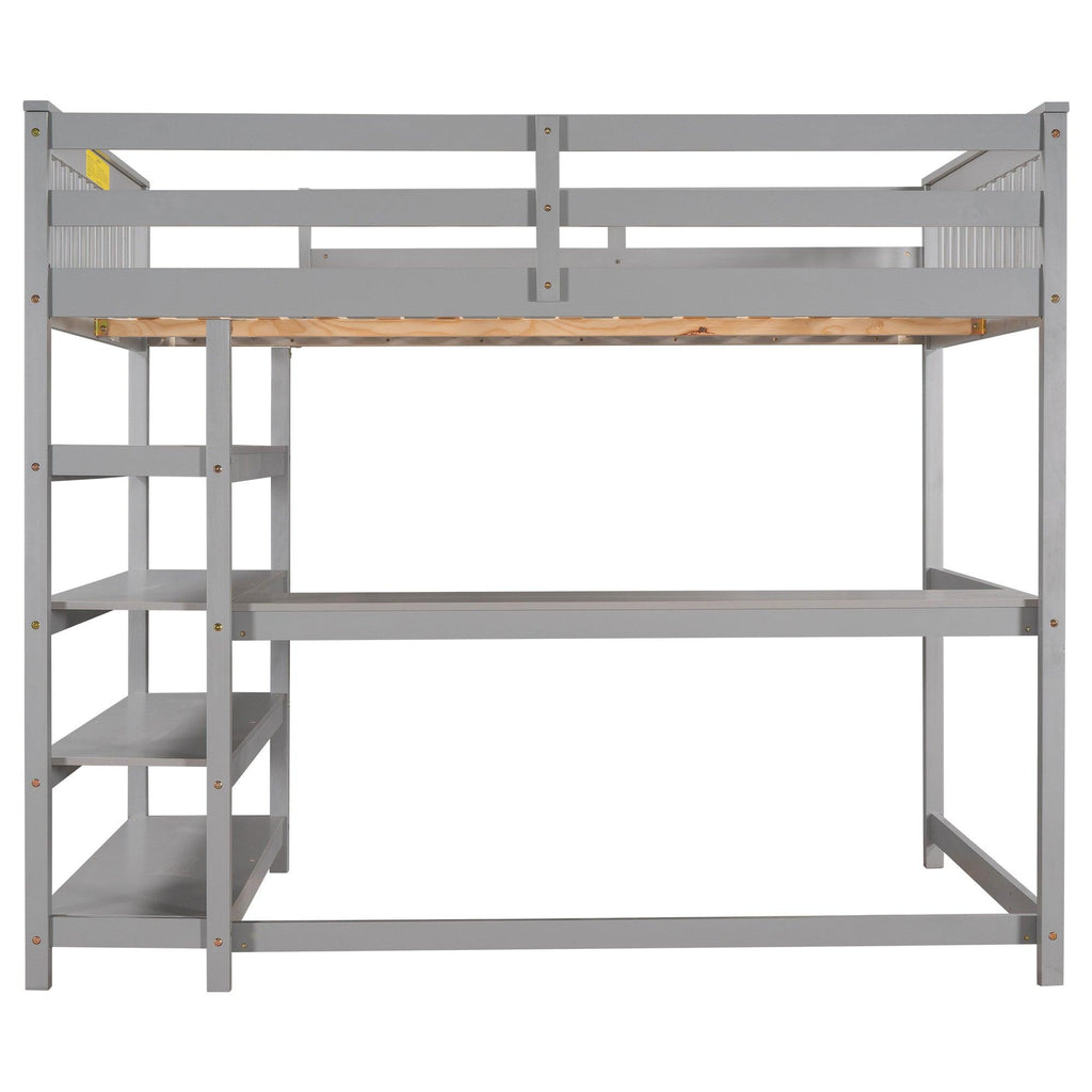 Full Size Loft Bed with Storage Shelves and Under-bed Desk, Gray(OLD SKU:SM000246AAE-1)