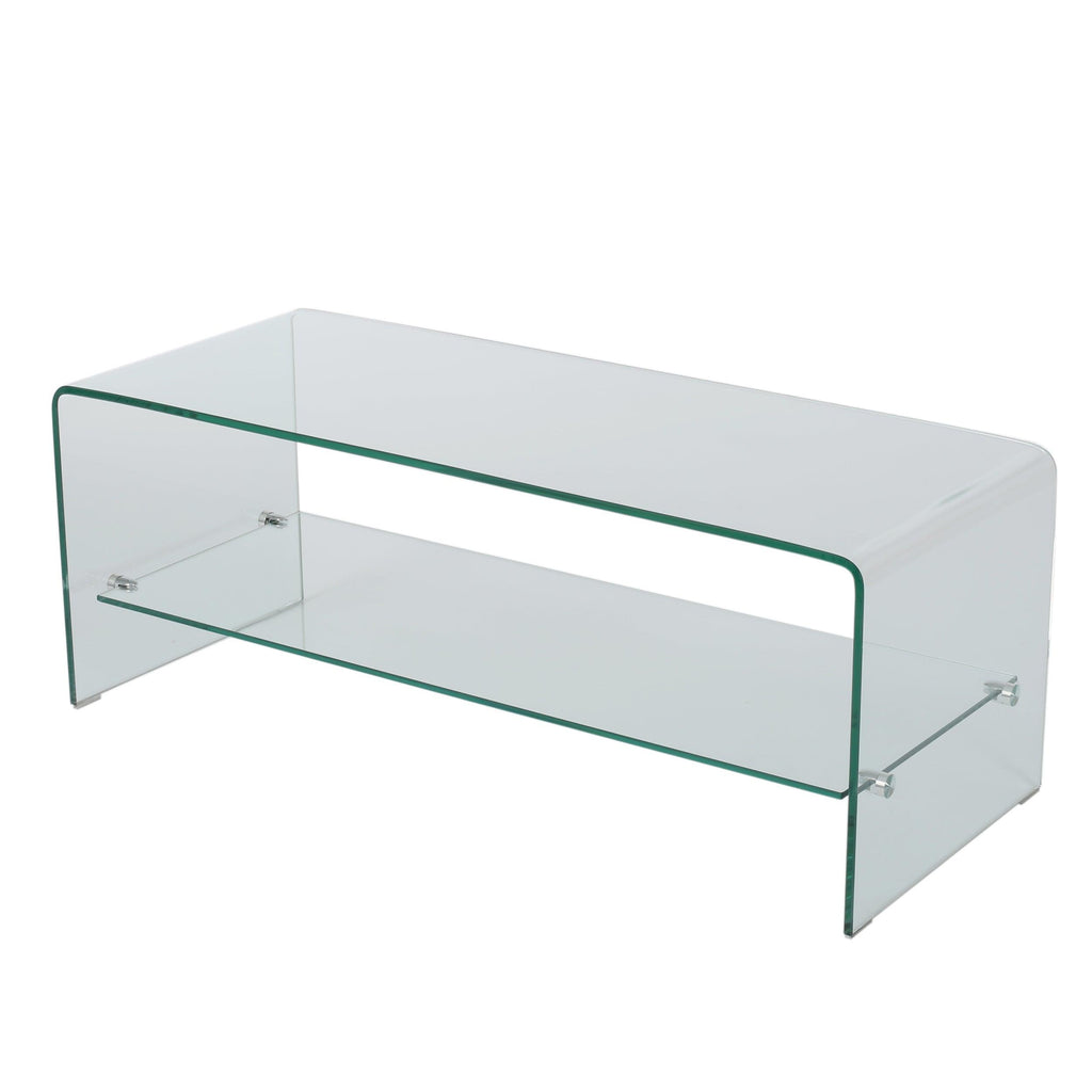 - Compliment your glass furniture or start a whole new glass furniture collection with this tempered glass TV stand.