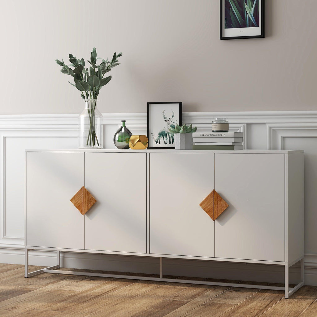 - High quality & Occasions: It's made of E1 MDF with UV painting surface, iron frame stand offers extra stable ability, works great as a sideboard, buffet, TV stand, hallway cabinet etc.