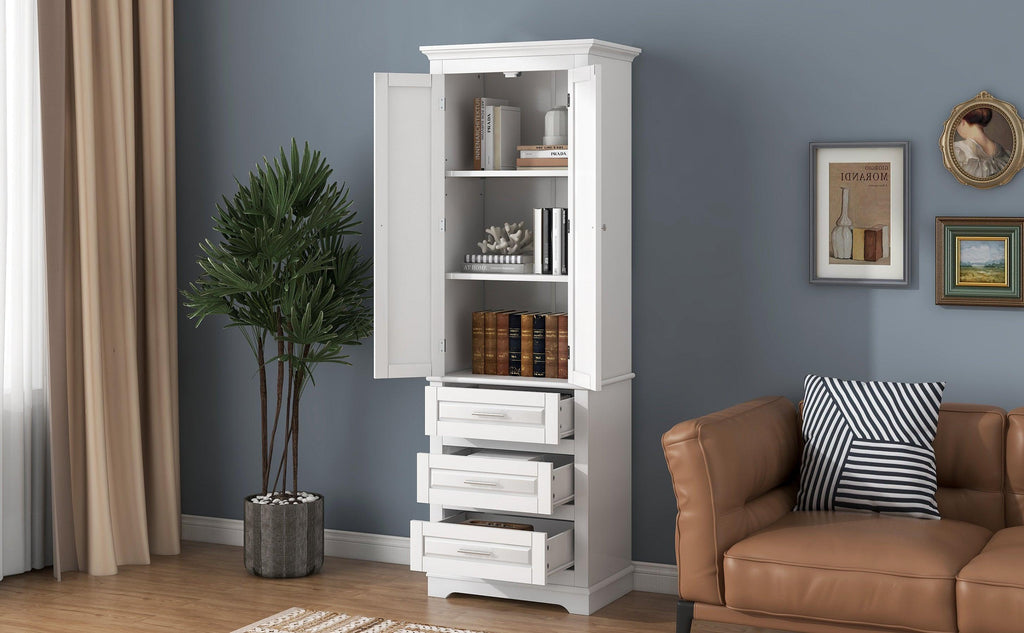 - Ample Storage: Upper enclosed cabinet has three tiers to accommodate decorations or articles for daily use. There are three big drawers below storing many sundries to keep the room organized and tidy