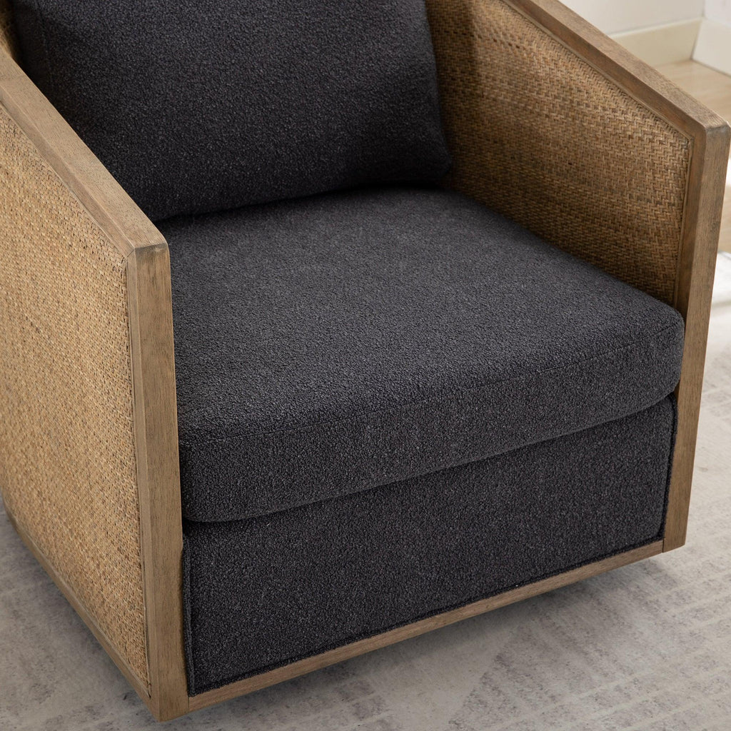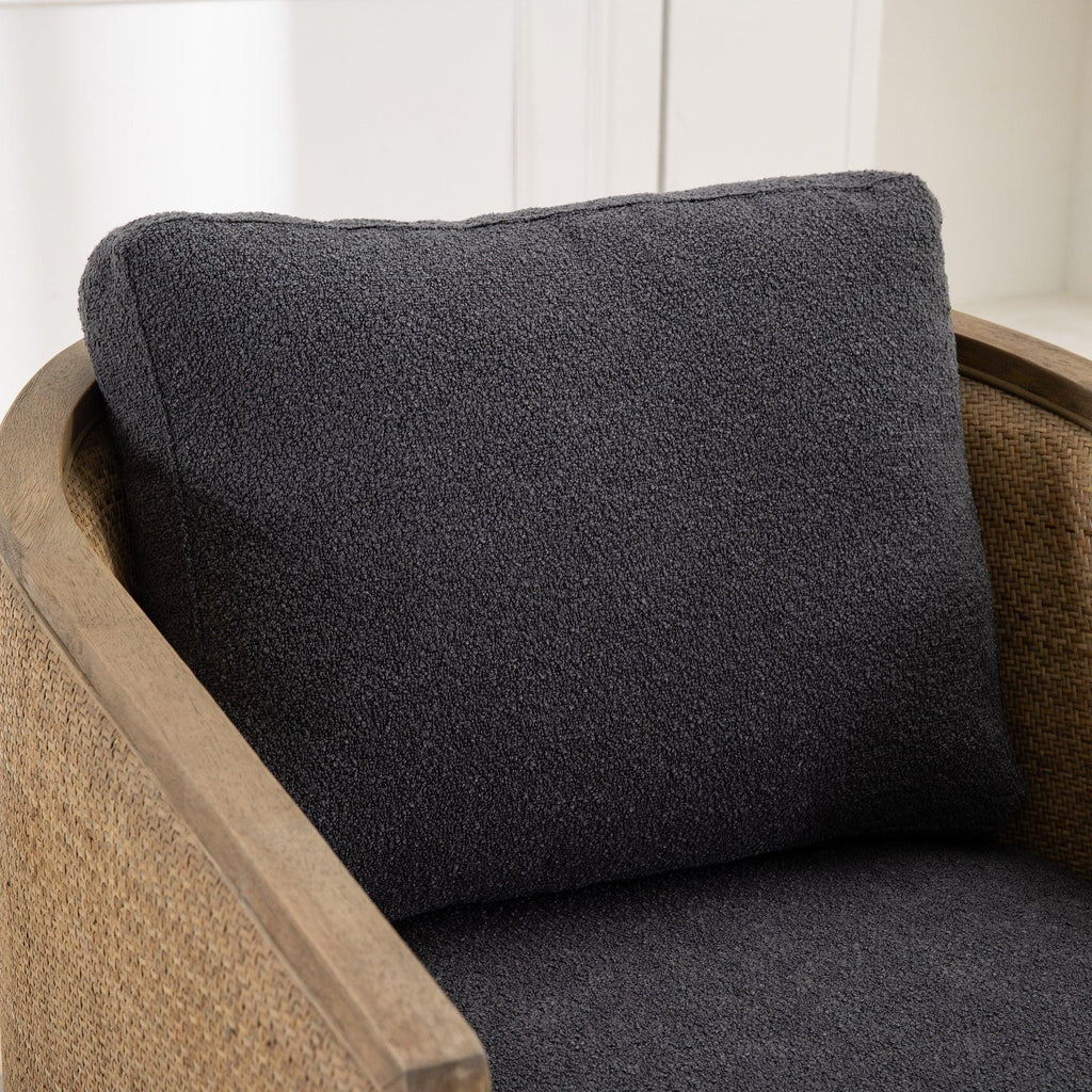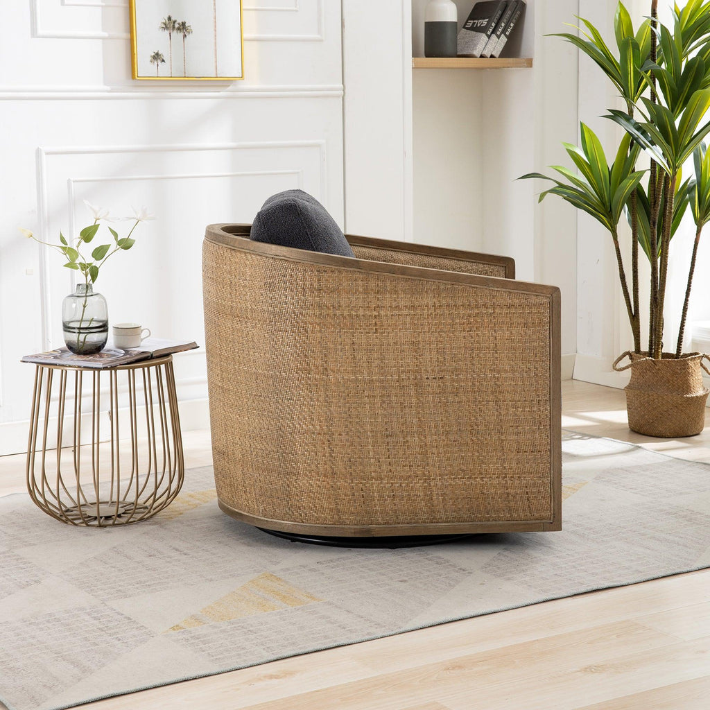 - The accent chair features rattan wrapped around the frame of the chair for a unique charm to enhance your decor, featuring elegant rattan details that add a touch of sophistication to any room.