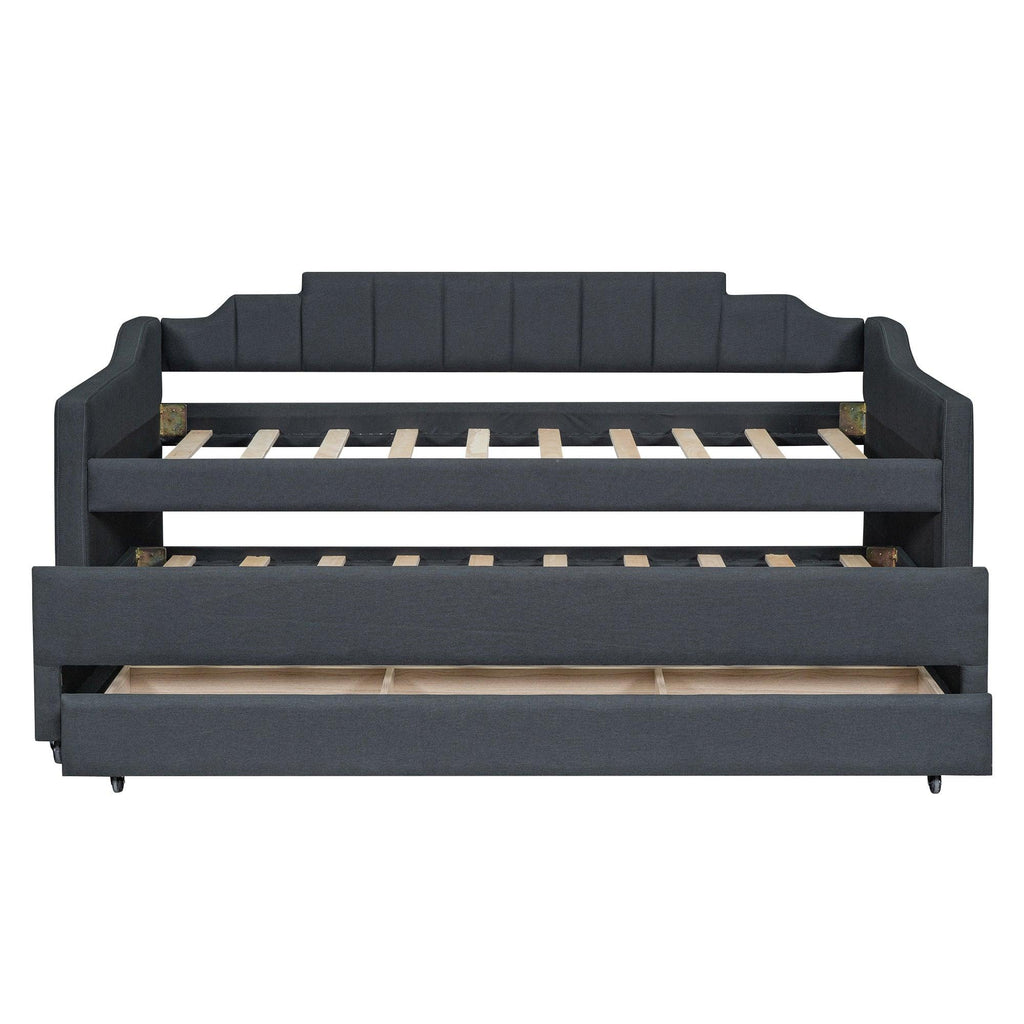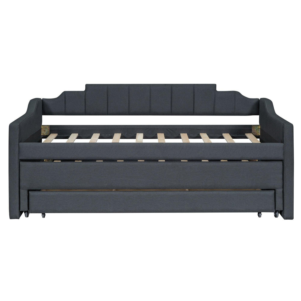 Playing the part of sofa and bed, daybeds are a fantastic solution for smaller spaces (think: studio apartments, guest rooms, home offices, etc.). They offer a cozy spot to curl up with a good book or catch a quick catnap, and they provide convenient sleeping arrangements for overnight guests during sleepovers and beyond. This daybed is crafted from pine wood and MDF and features a linen-blend upholstery awash in a solid finish. Best of all, it includes three lower drawers for keeping spare linens, clean clothes, games, and more.And with a trundle for entertaining guests or friends.