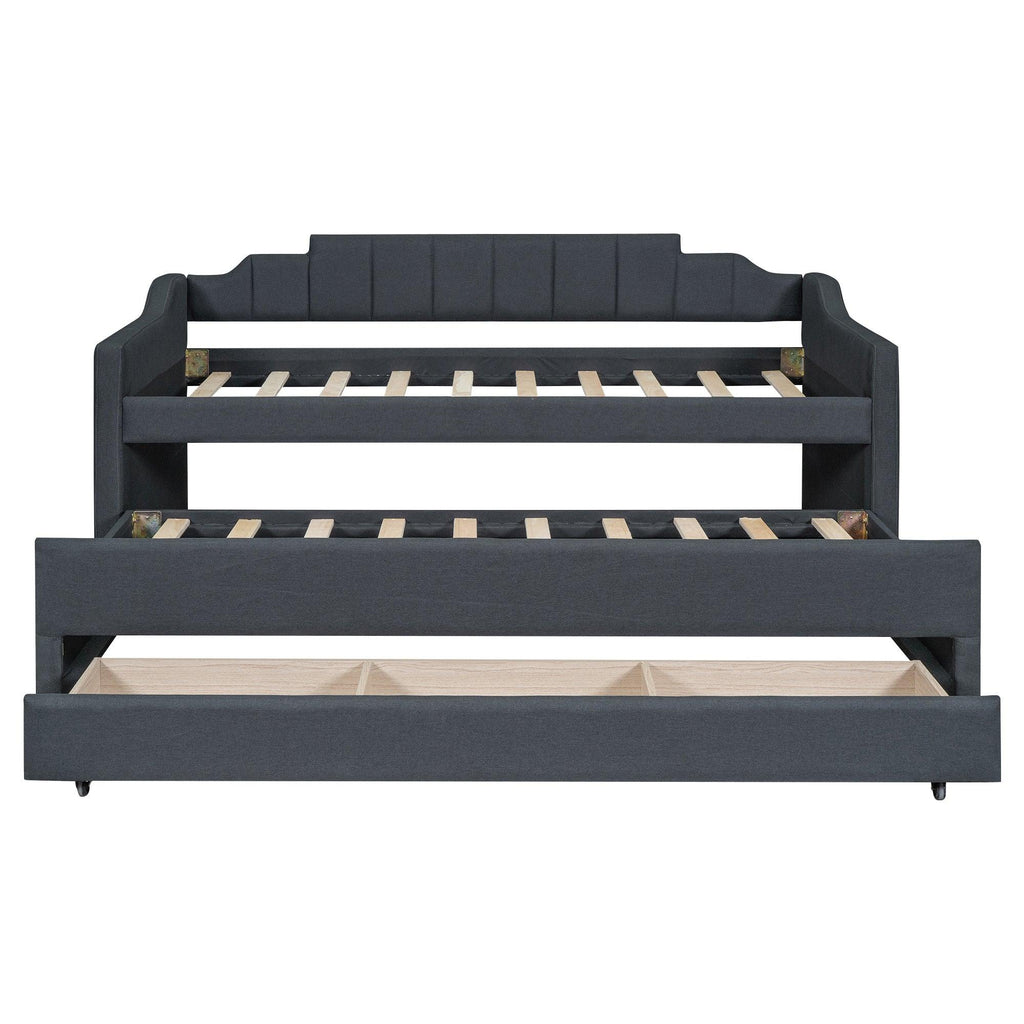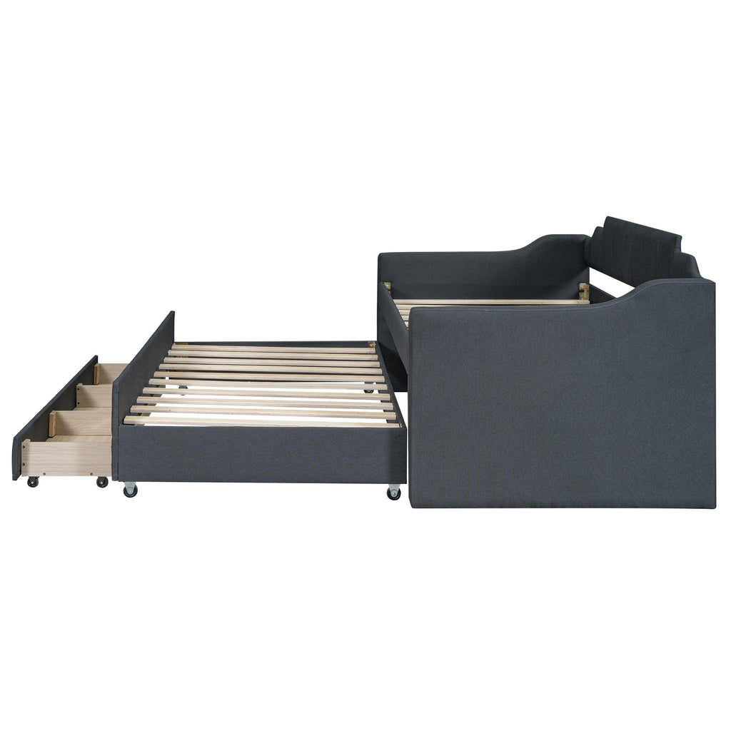 Twin Size Upholstered Daybed with Trundle and Three Drawers,Grey