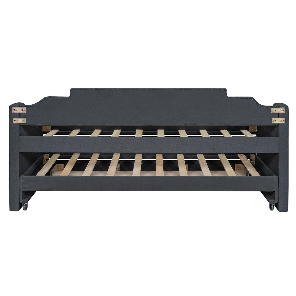 - [Solid Construction] This daybed is crafted from pine wood and MDF and features a linen-blend upholstery awash in a solid finish.The construction ensures both a lifetime of use, and a sturdy frame with a backrest which won't wobble.