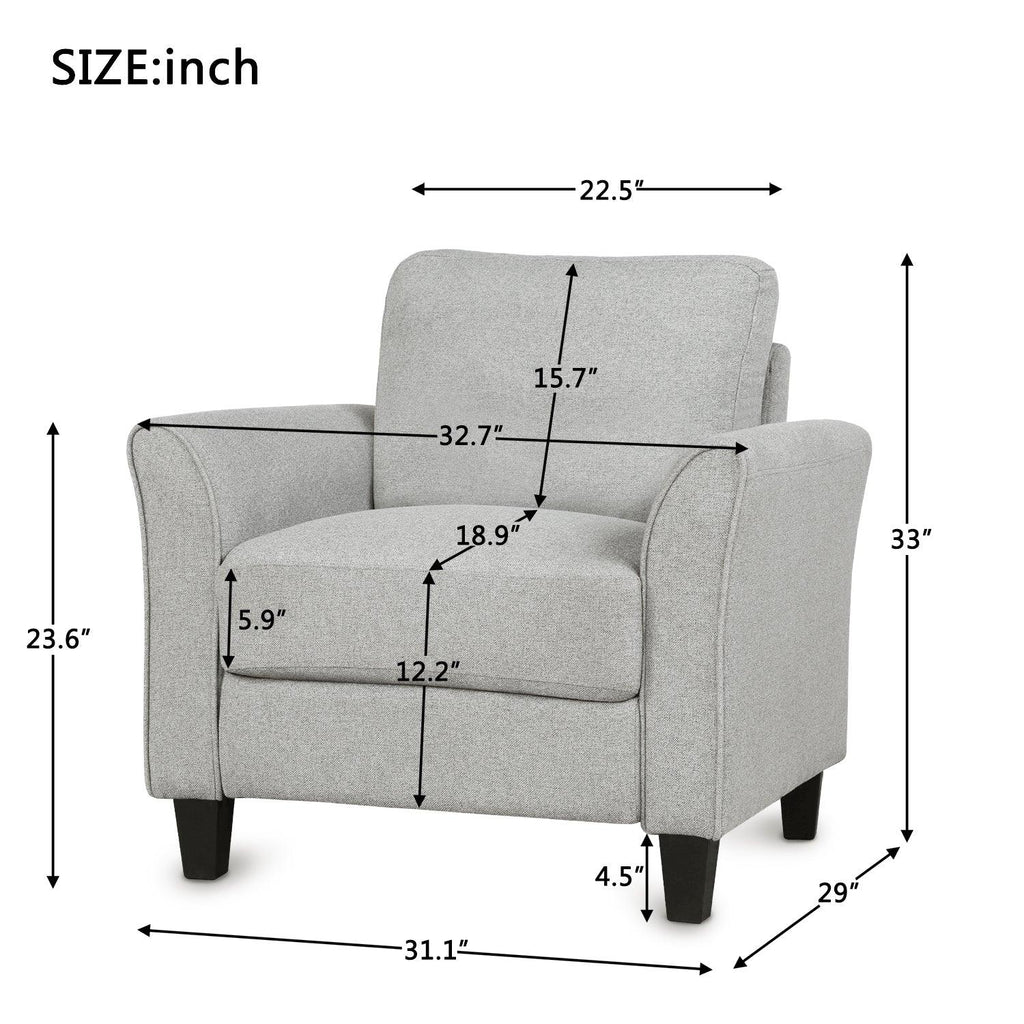 - Sofa set includes: 1 x chair upholstered with in soft linen fabric and cushions padded with thick foam for an elegant appearance and extra comfort Constructed with sturdy hardwood frame and inner cushion spring reinforcement for stability and durability .Easily assembles with your family in under 20 minutes
