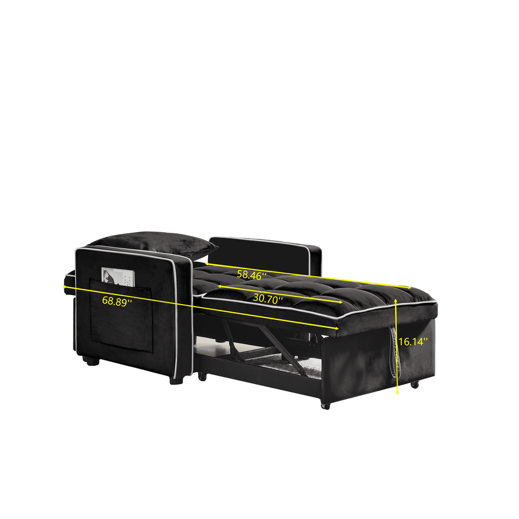 1.Elegant and luxurious decoration: an amazing velvet combination of its unique luster and elegance, for your home decoration to bring an incredible soft touch and exquisite texture. Tufted velvet and premium foam make the chair bed unmatched for softness and support, perfect for long reading or movie marathons 2.Convertible design: Normally, a berth chair can be used as a footstool. It can easily be turned into a sofa chair, recliner or bed. Even two people can put together a king-size bed, realize the desire to move the bedroom, no longer worry about One Hour Photo. 3.Modern style-low-key modern design makes folding stool sofa bed more simple and generous. The classic gray suits each kind of decoration style, the multifunctional use lets you be more convenient.