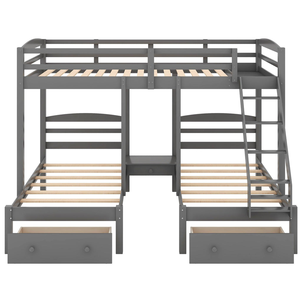 Full over Twin & Twin Bunk Bed,Triple Bunk Bed with Drawers, Gray