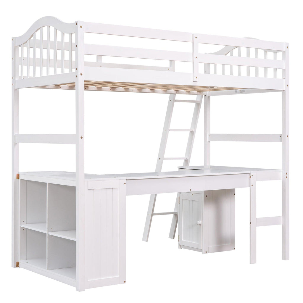 Twin size Loft Bed with Drawers, Cabinet, Shelves and Desk, Wooden Loft Bed with Desk